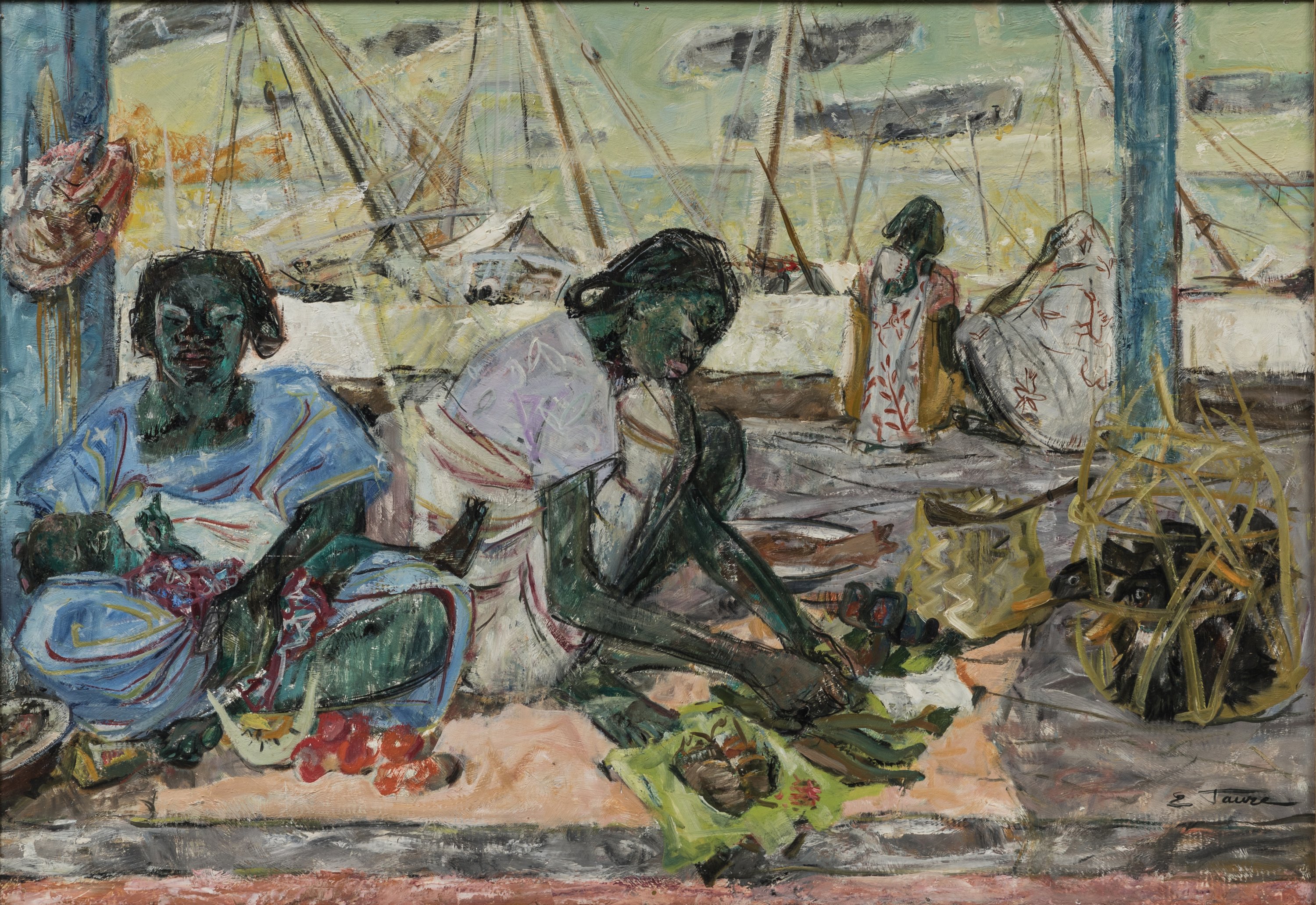 Elisabeth FAURE (Française,1906 - 1964) Marchandes africaines sur un port....