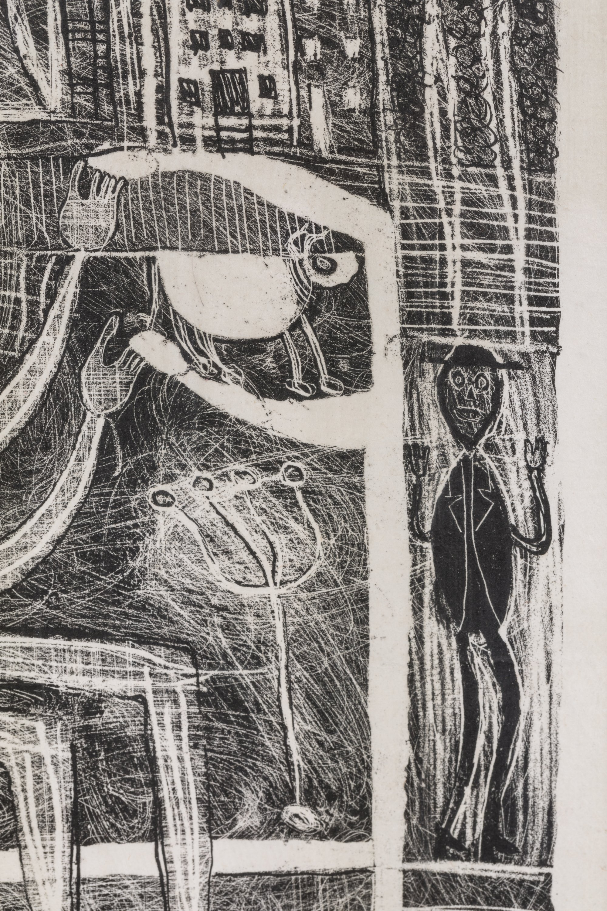 Cette œuvre correspond à la couverture du texte de Pierre Seghers, "L'homme du commun ou Jean Dubuffet", édité à 165 exemplaires. Imprimée par Mourlot Frères le 5 octobre 1944, alors que œuvre de Dubuffet n'est pas encore connue et que l'artiste découvre la lithographie, cette lithographie intègre quelque mois plus tard la série "Matière et Mémoire", éditée par Mourlot.