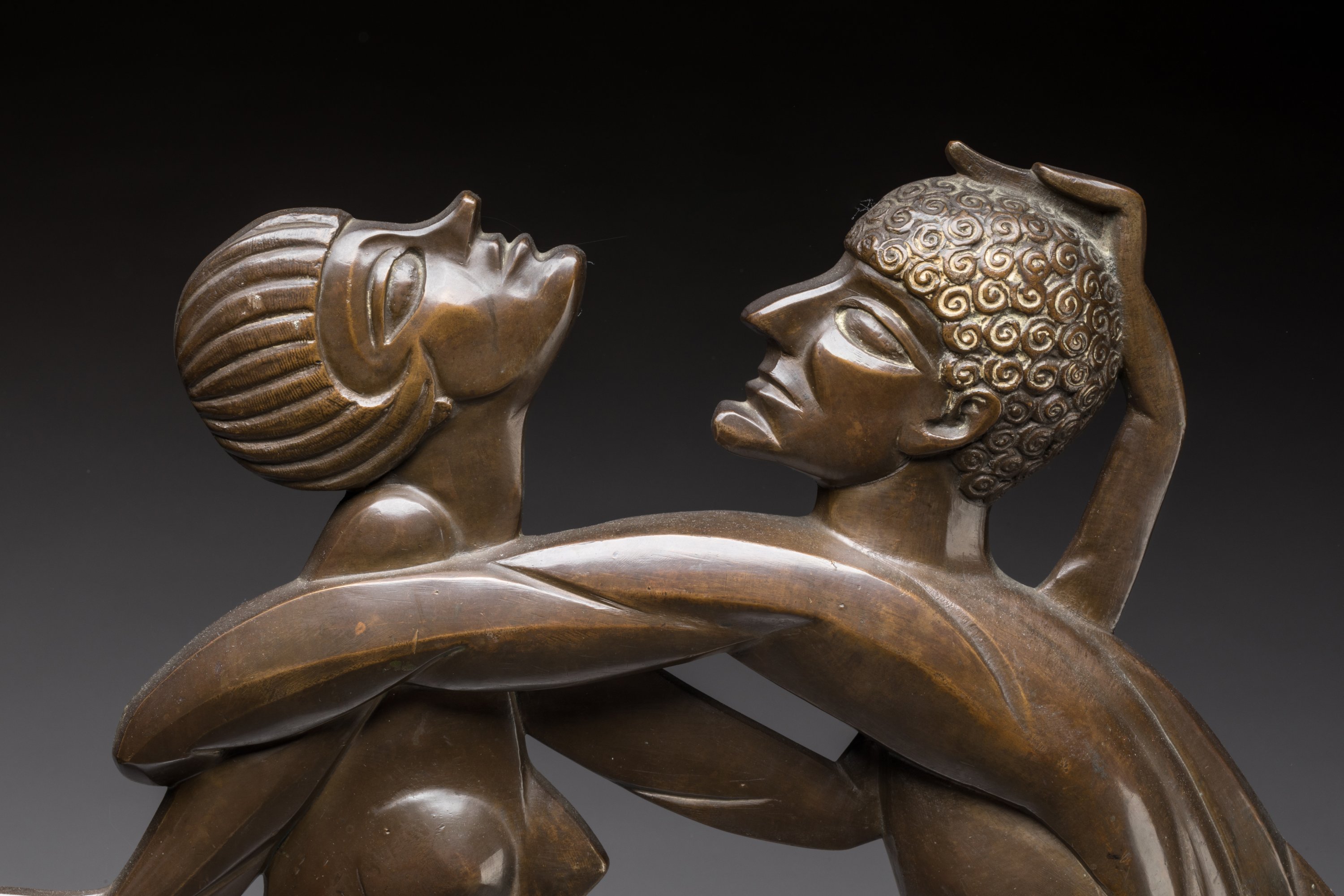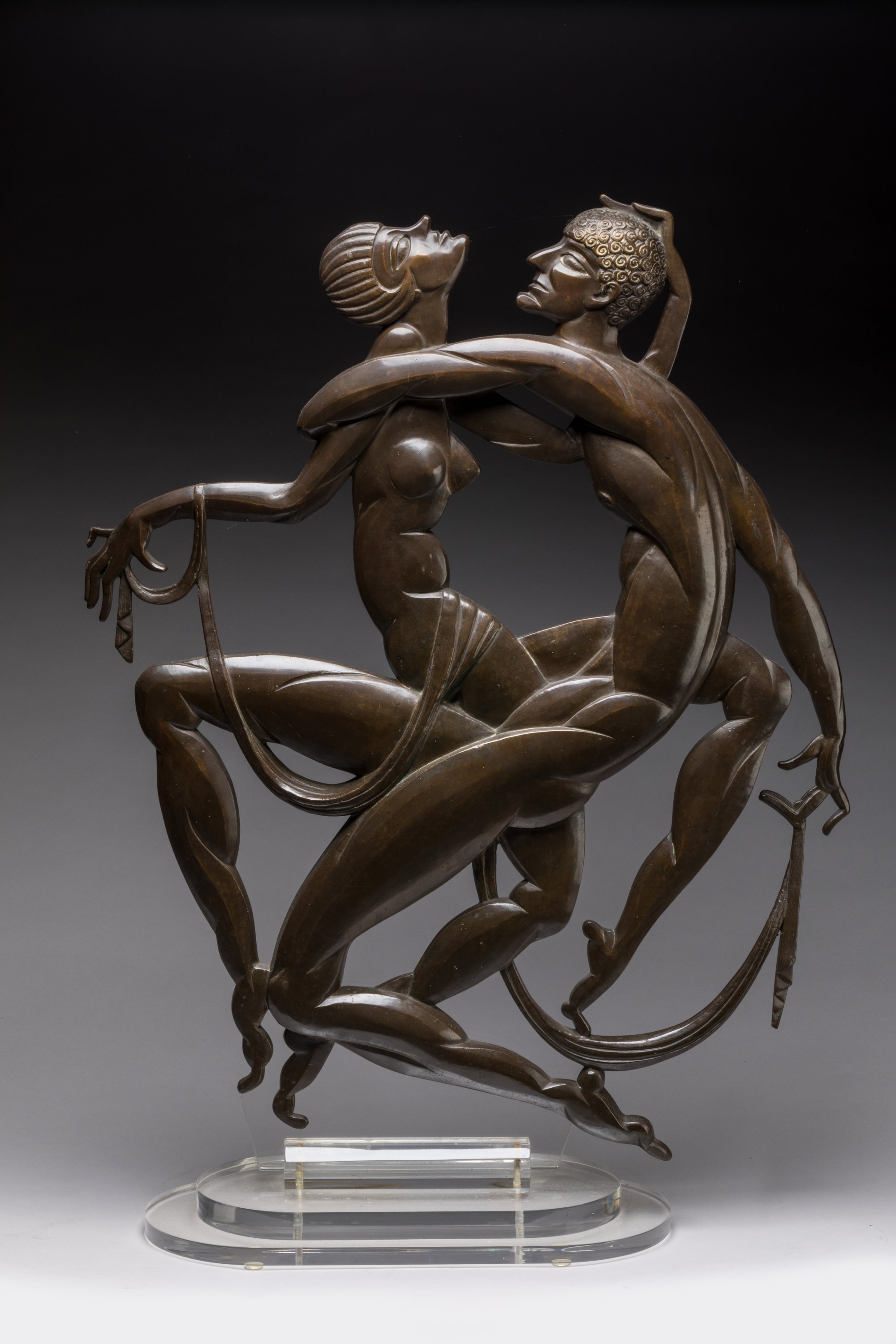 École FRANÇAISE vers 1930Couple de danseursBas relief en bronze. Plaque...