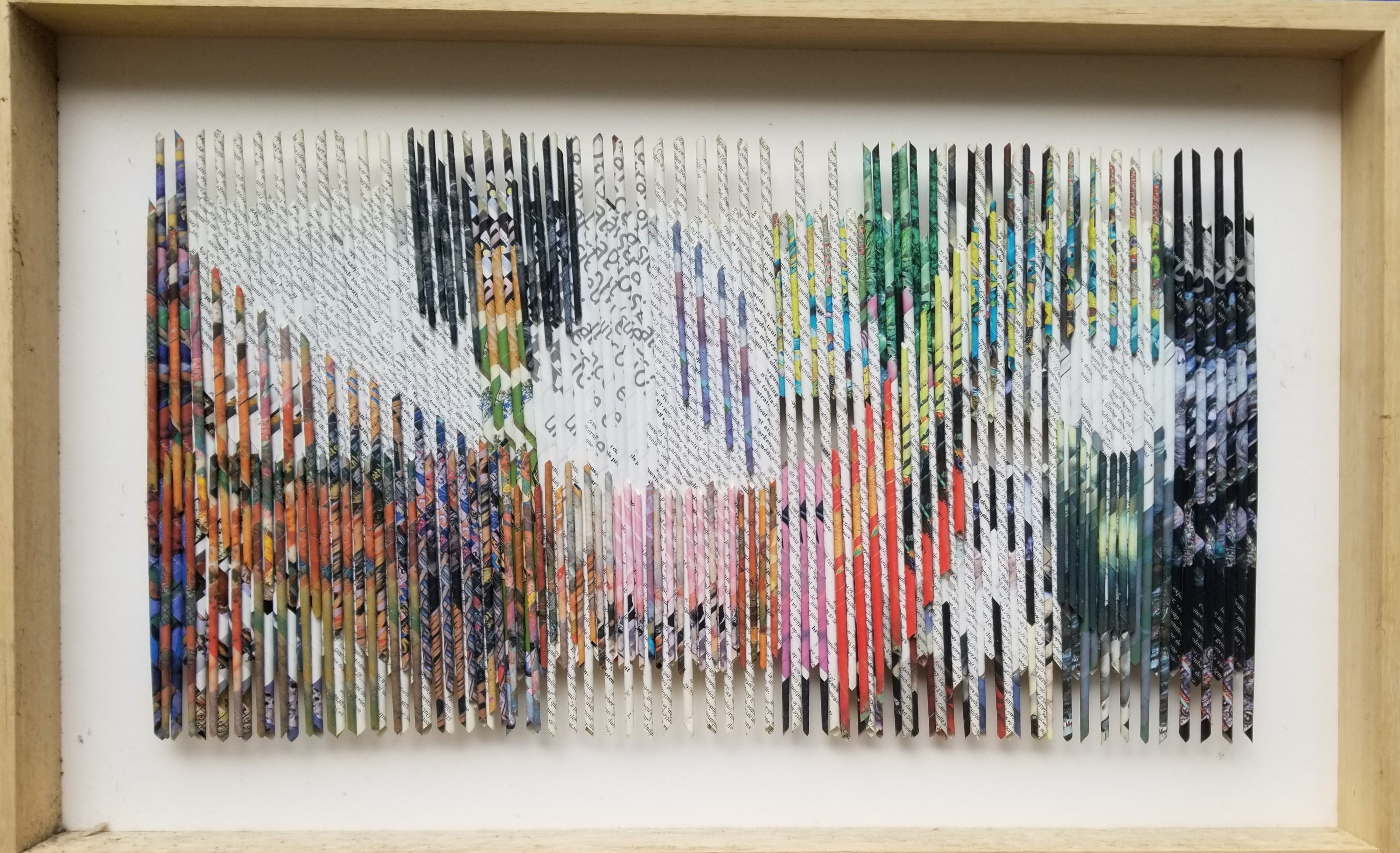 Collages relief de feuilles de magazine roulées, Signé daté au dos 2007.