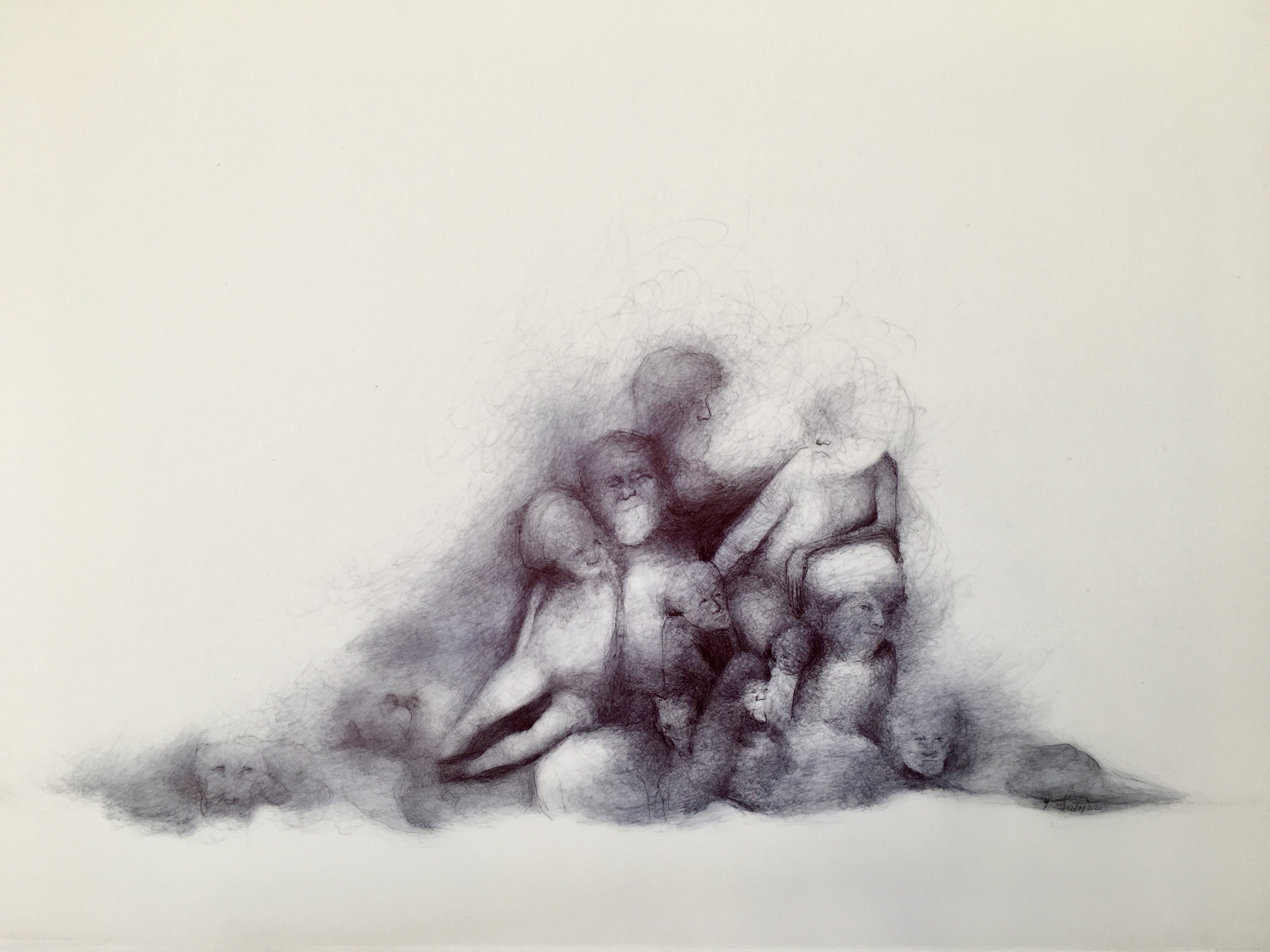 Stylo bille noir sur calque polyester.