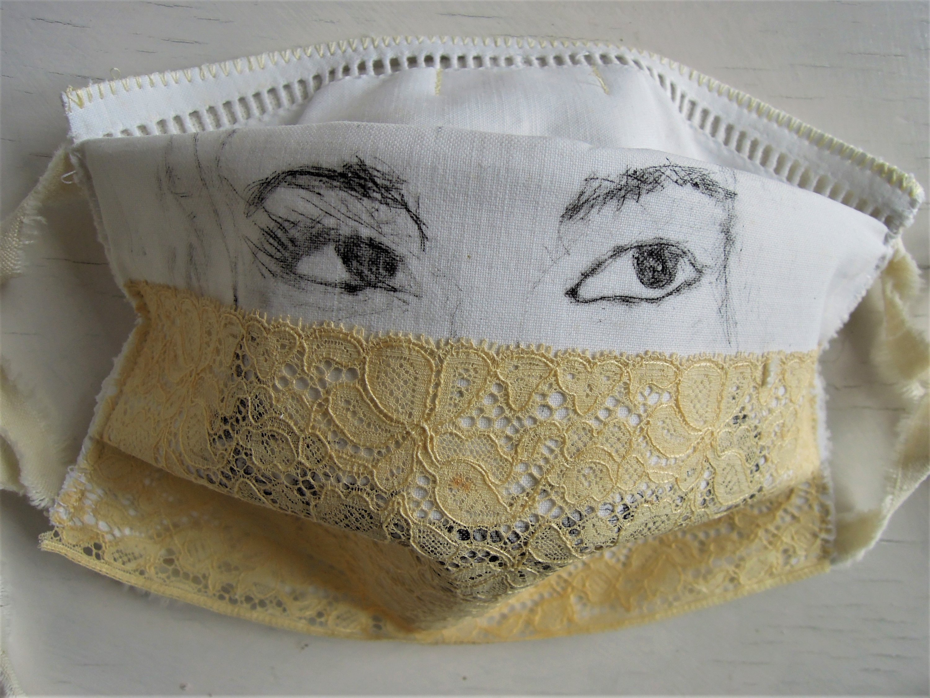 BOURDAIS Marie-Héléne (née en 1962)Masque masquéEstampe sur toile, composition textile...