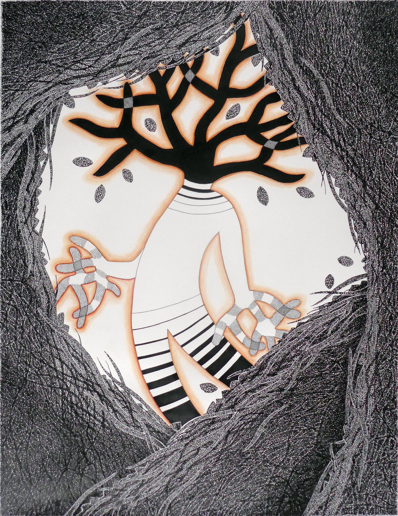 Plume Sergent Major et encre de chine sur papier japon. Crayon de couleur.