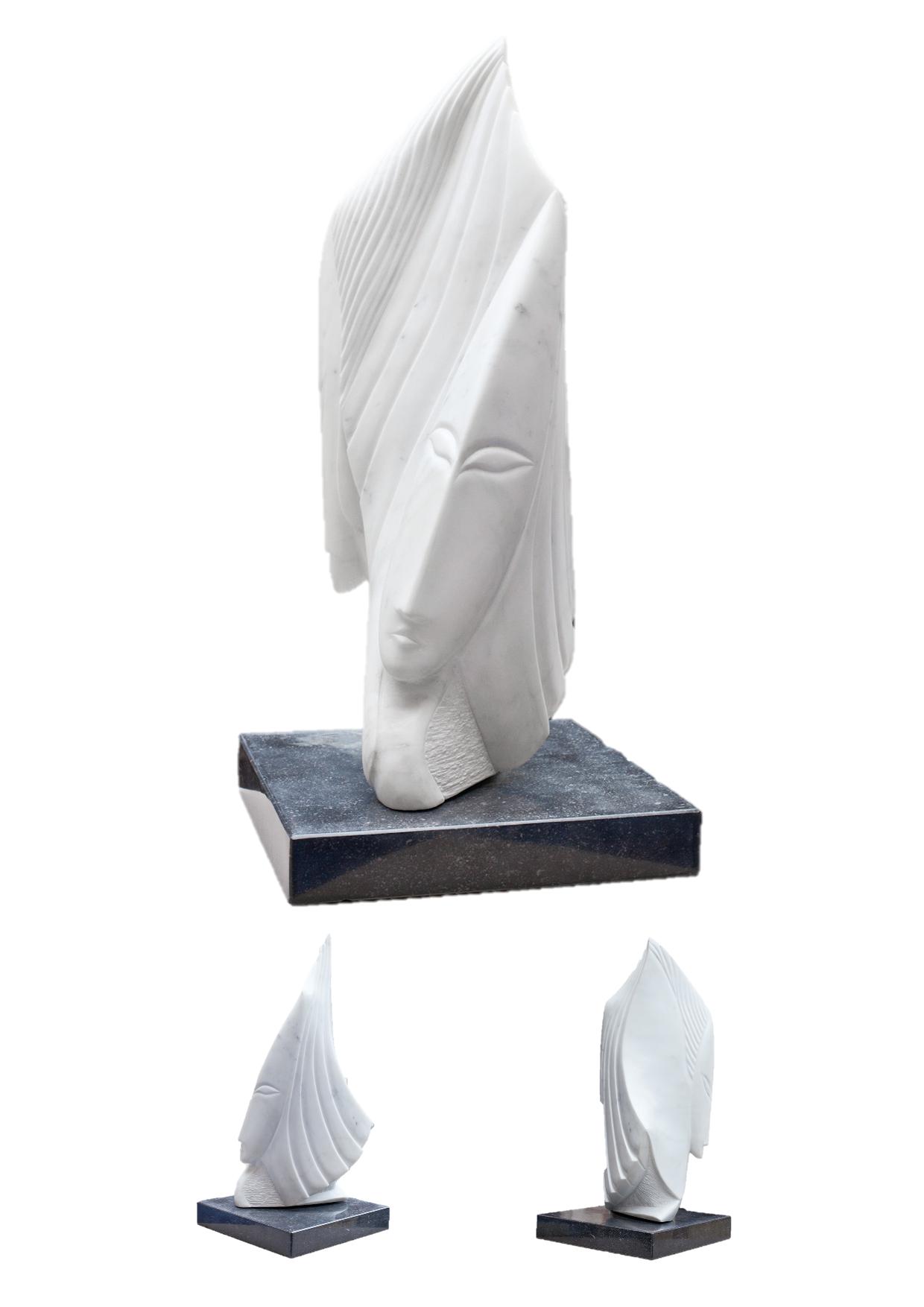 Sculpture en marbre de carrare sur socle de pierre de soignies.