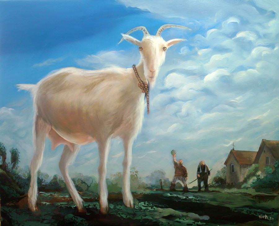 DE RIVAZ Olivier (né en 1959)La chèvre blancheHuile sur toile.100...