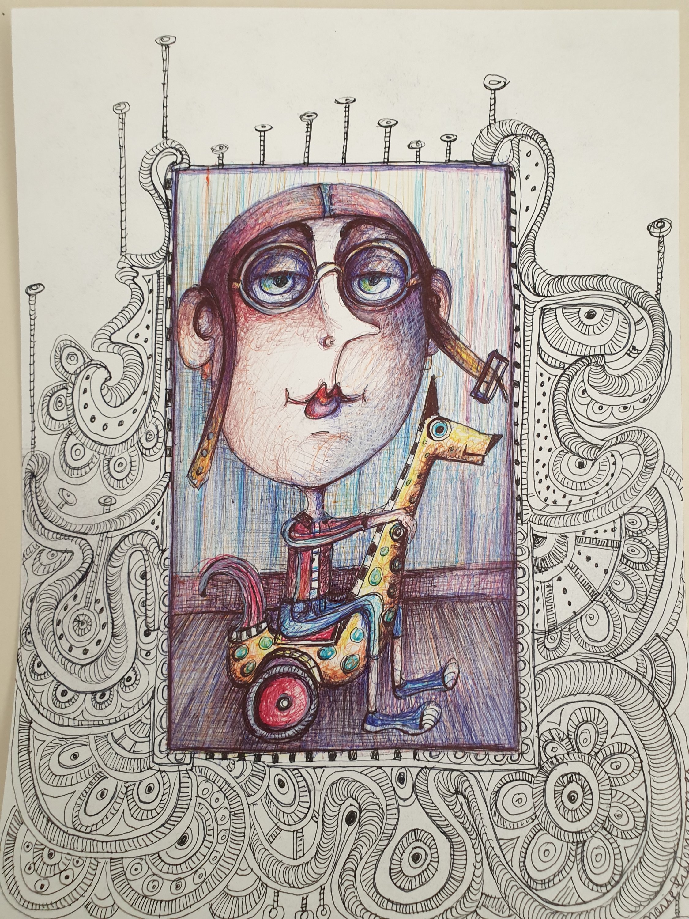 ROGER Marie-Hélène (née en 1957)Portrait petit joDessin au stylo sur...