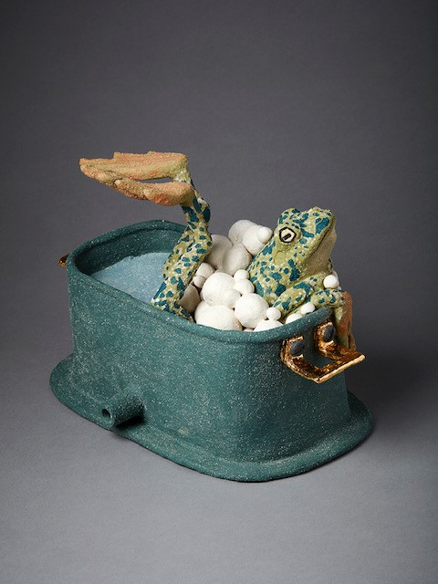 SABY Catherine (née en 1957)Grenouille et baignoire. Grès engobé (1230°)...
