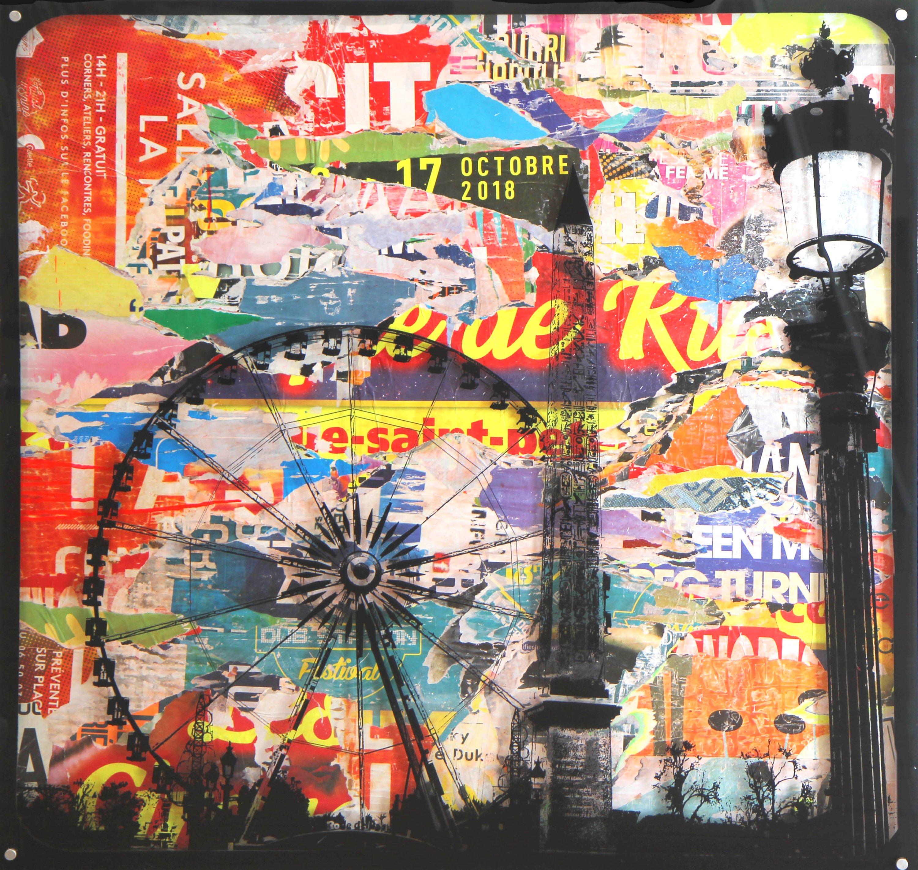 Photographie sur plexiglass superposée sur lacéartions urbaines.