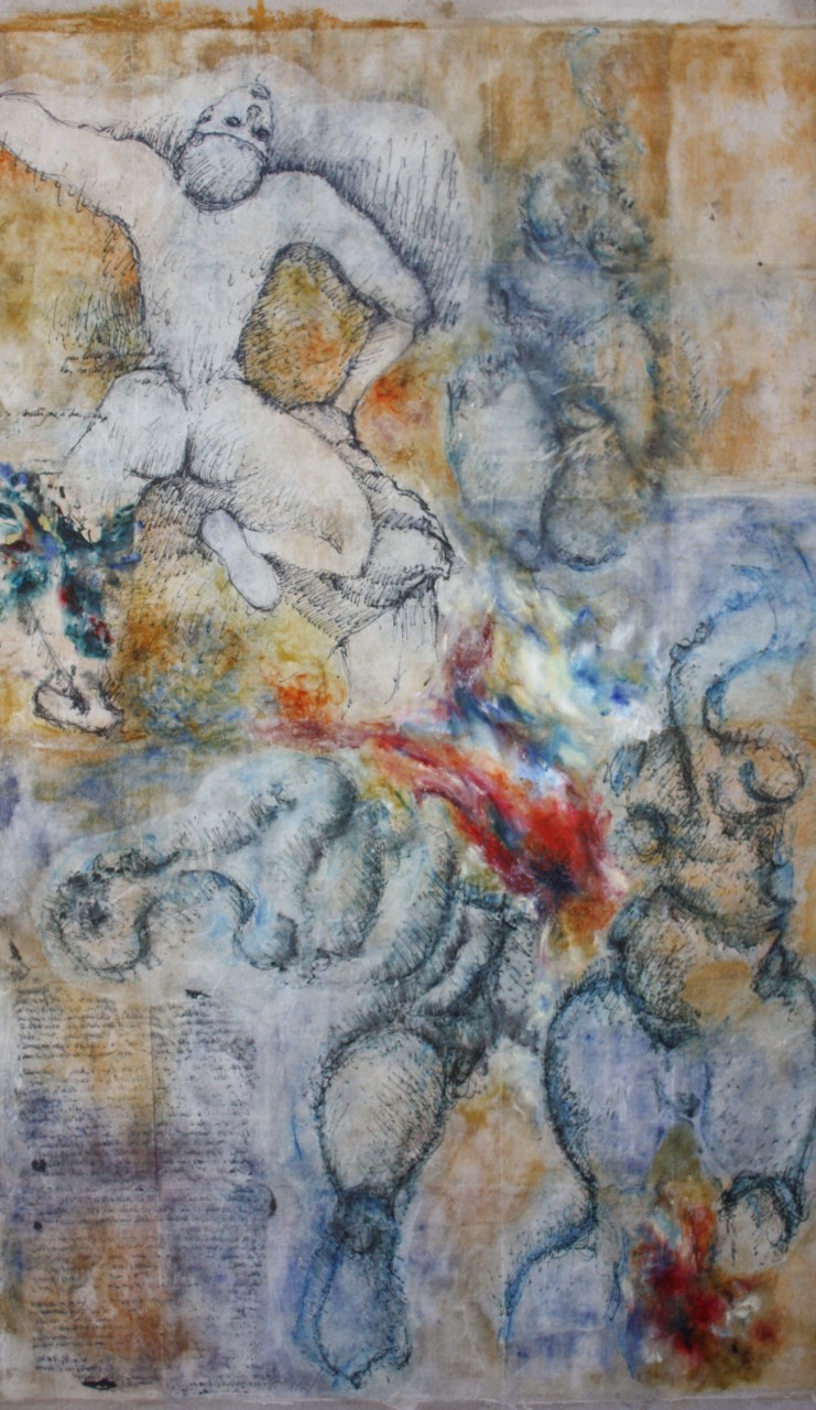 Huile, encre, pigment, glacis, marouflage sur toile de lin.