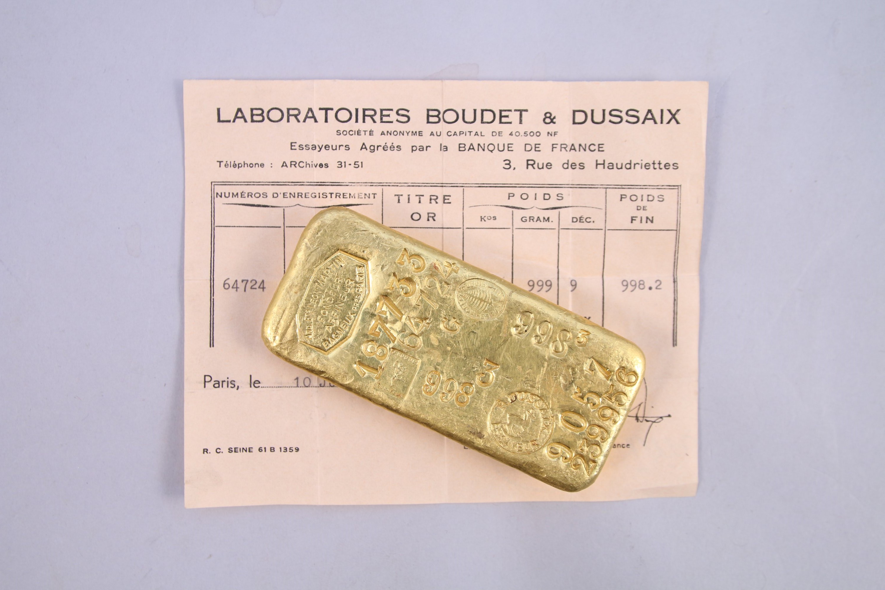 1 LINGOT OR avec son bulletin d'essai du 10 juillet 1967, n°64724/239956.