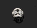 BAGUE en or gris 750 millièmes ajouré, le centre orné de quatre diamants ronds et coussin de taille ancienne.