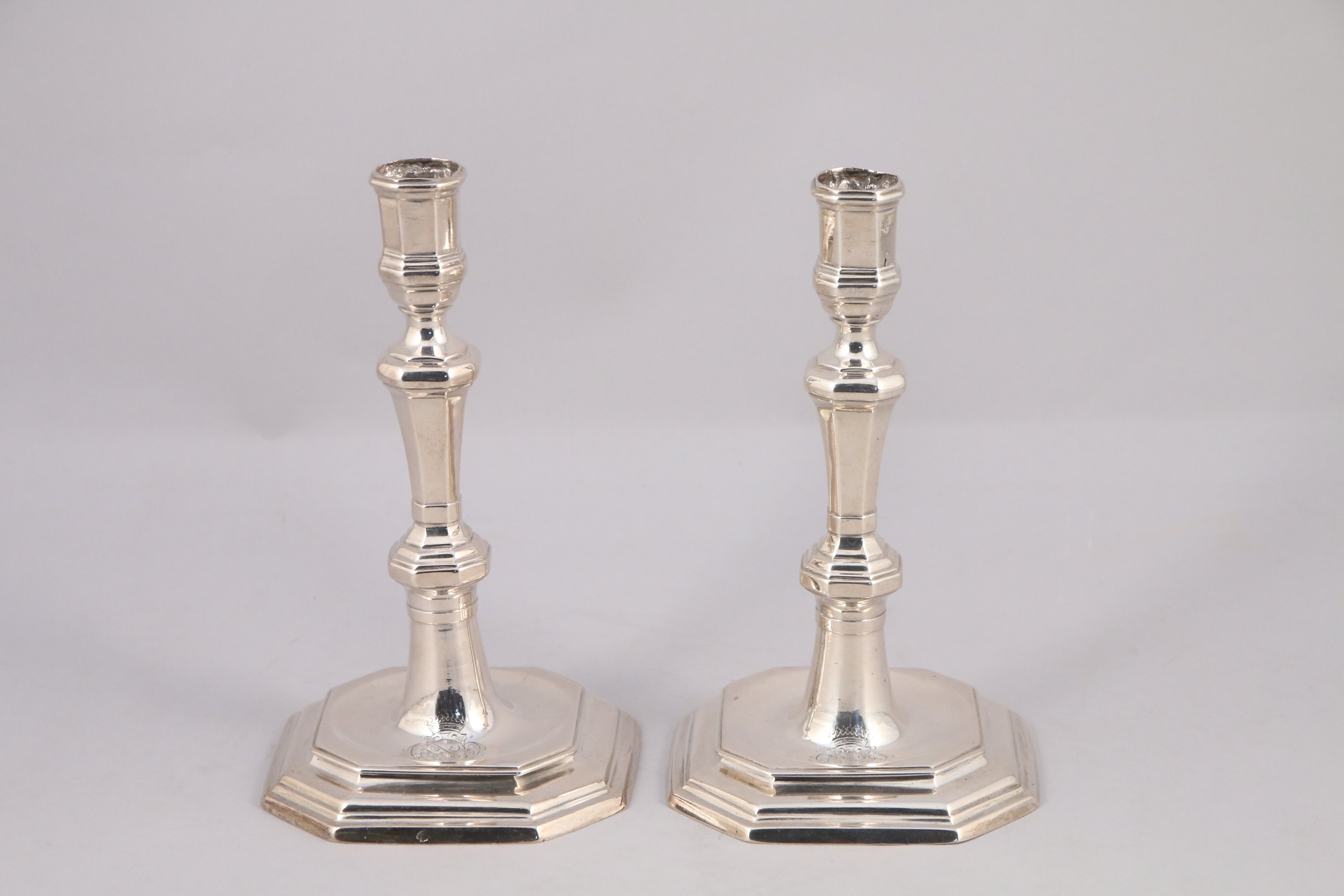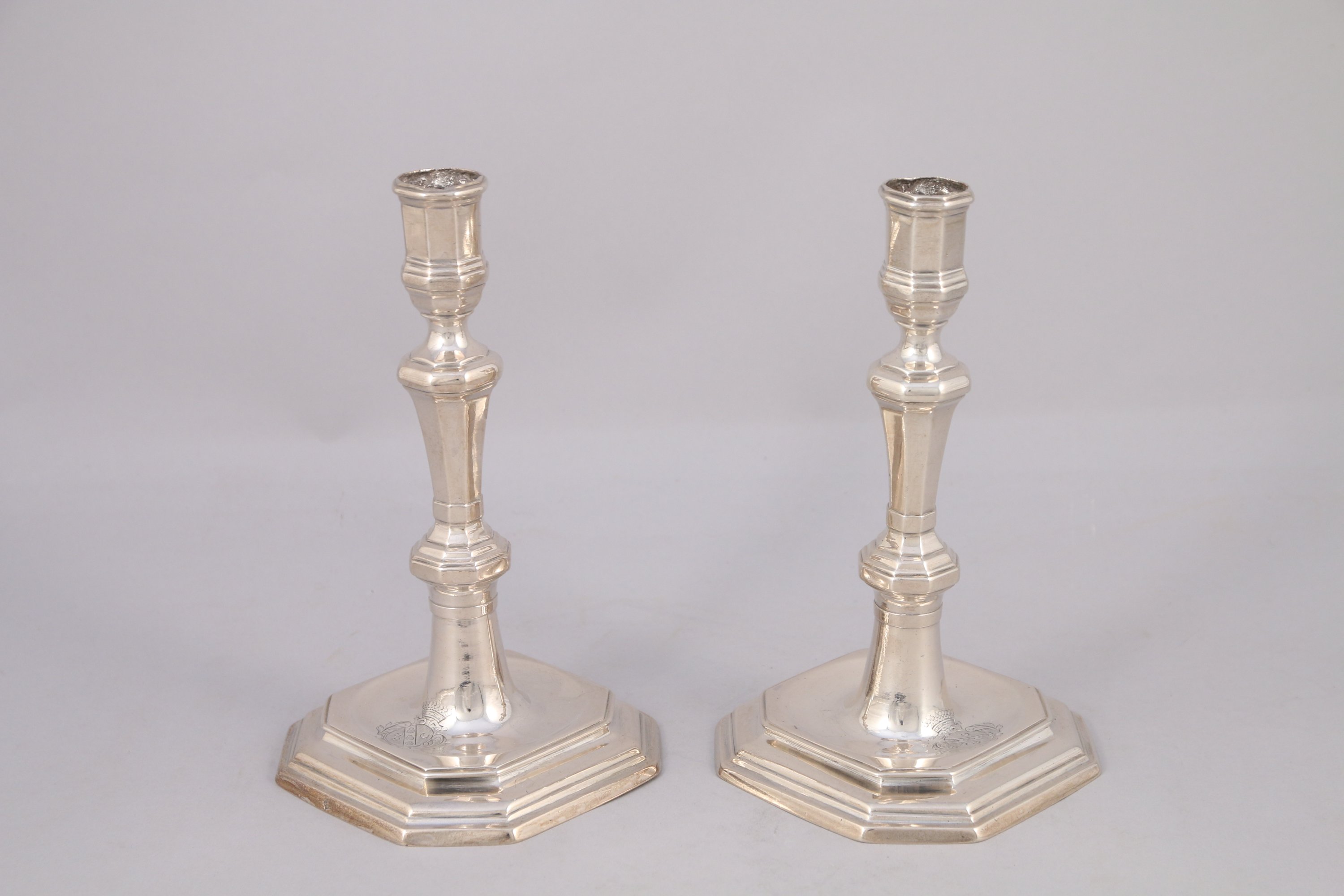 Pair of silver torches with count's coat of arms, Louis XIV period work by a goldsmith from Rennes.