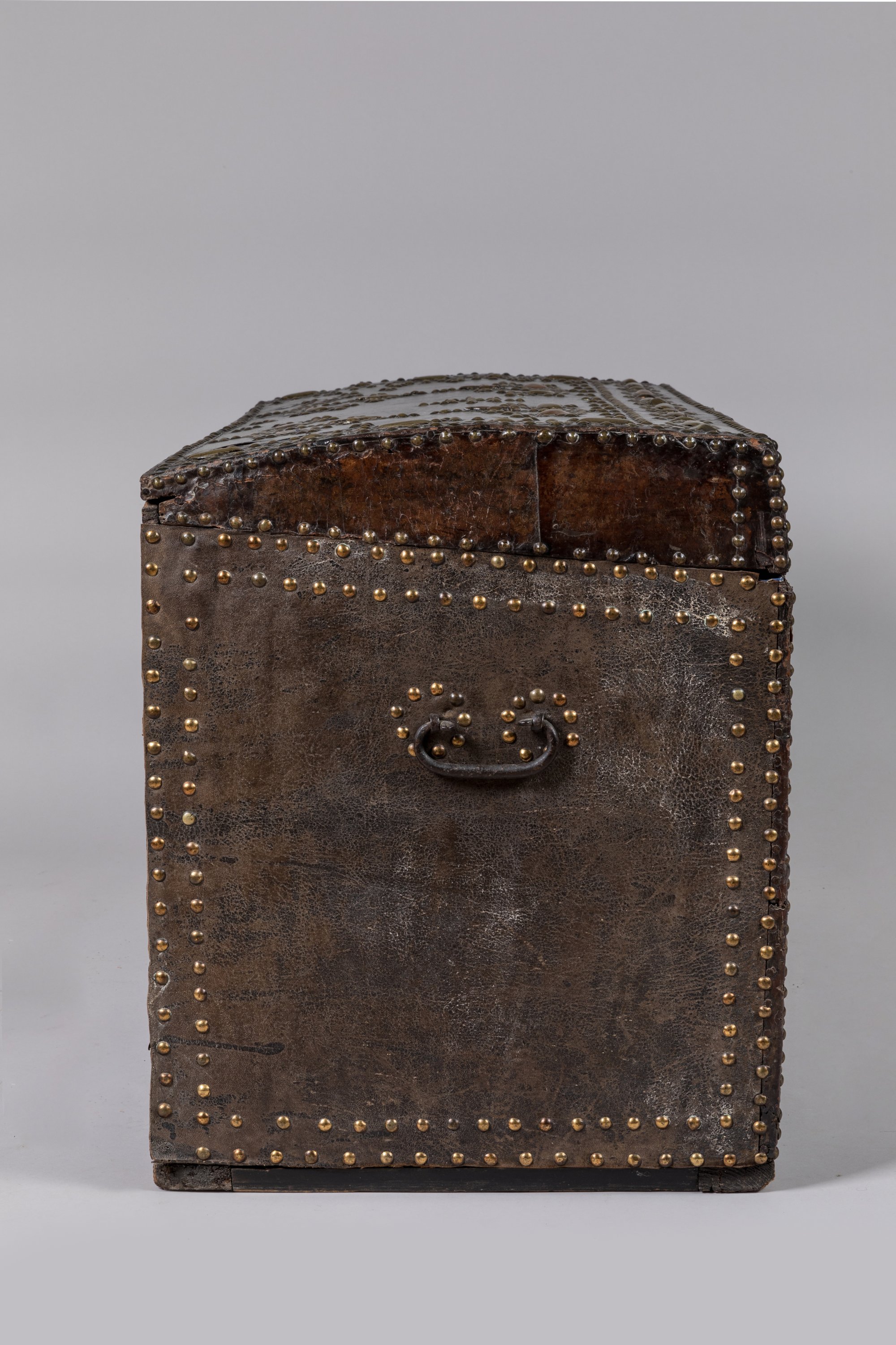 Leather coach trunk in the profile of Louis XIV. Late 17th, early 18th century.