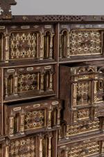 Bibliographie : Maria Paz AGUILO ALONSO, "El meuble en Espana siglos XVI-XVII", à comparer avec la façade du meuble illustré sous le numéro 218, p.291.