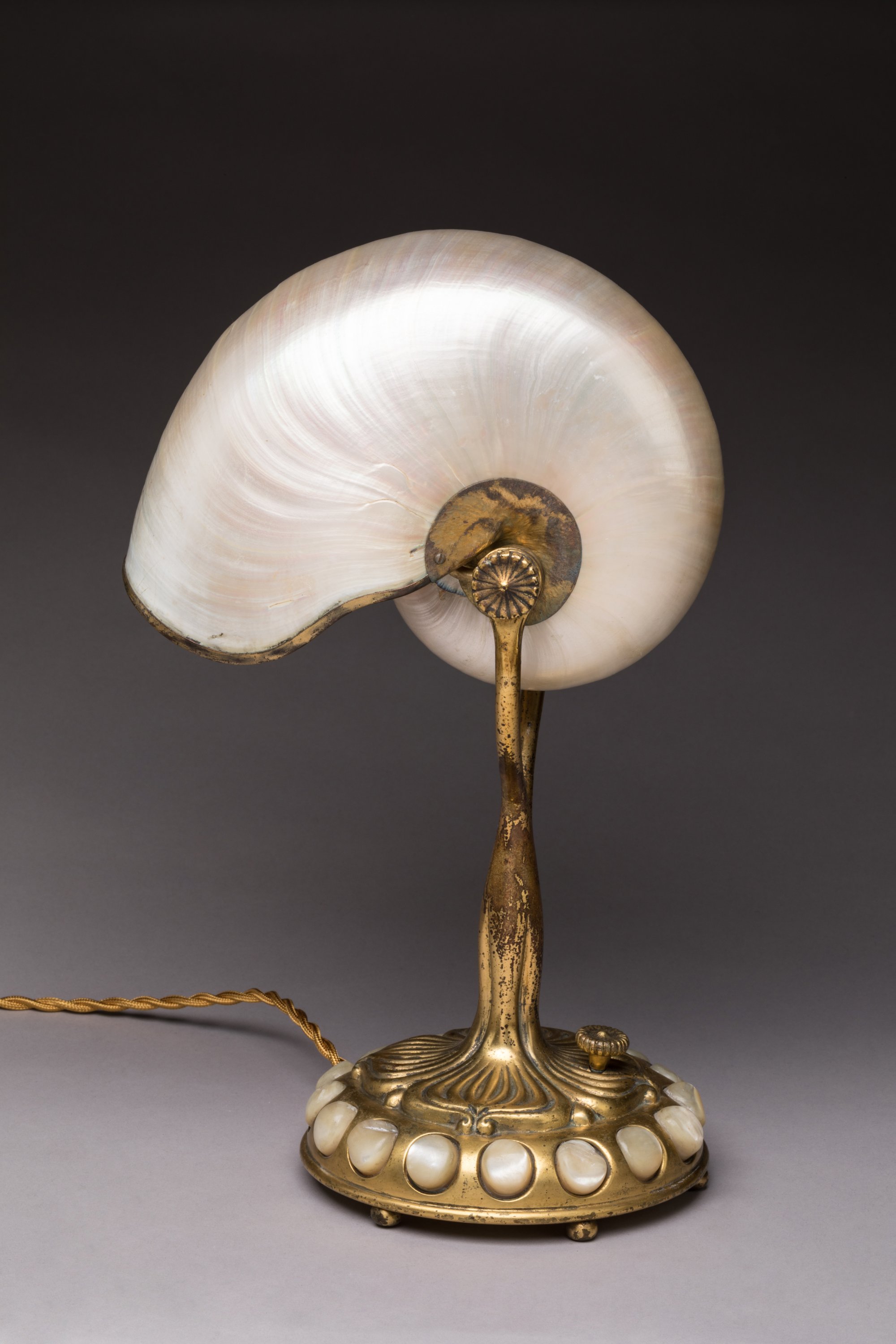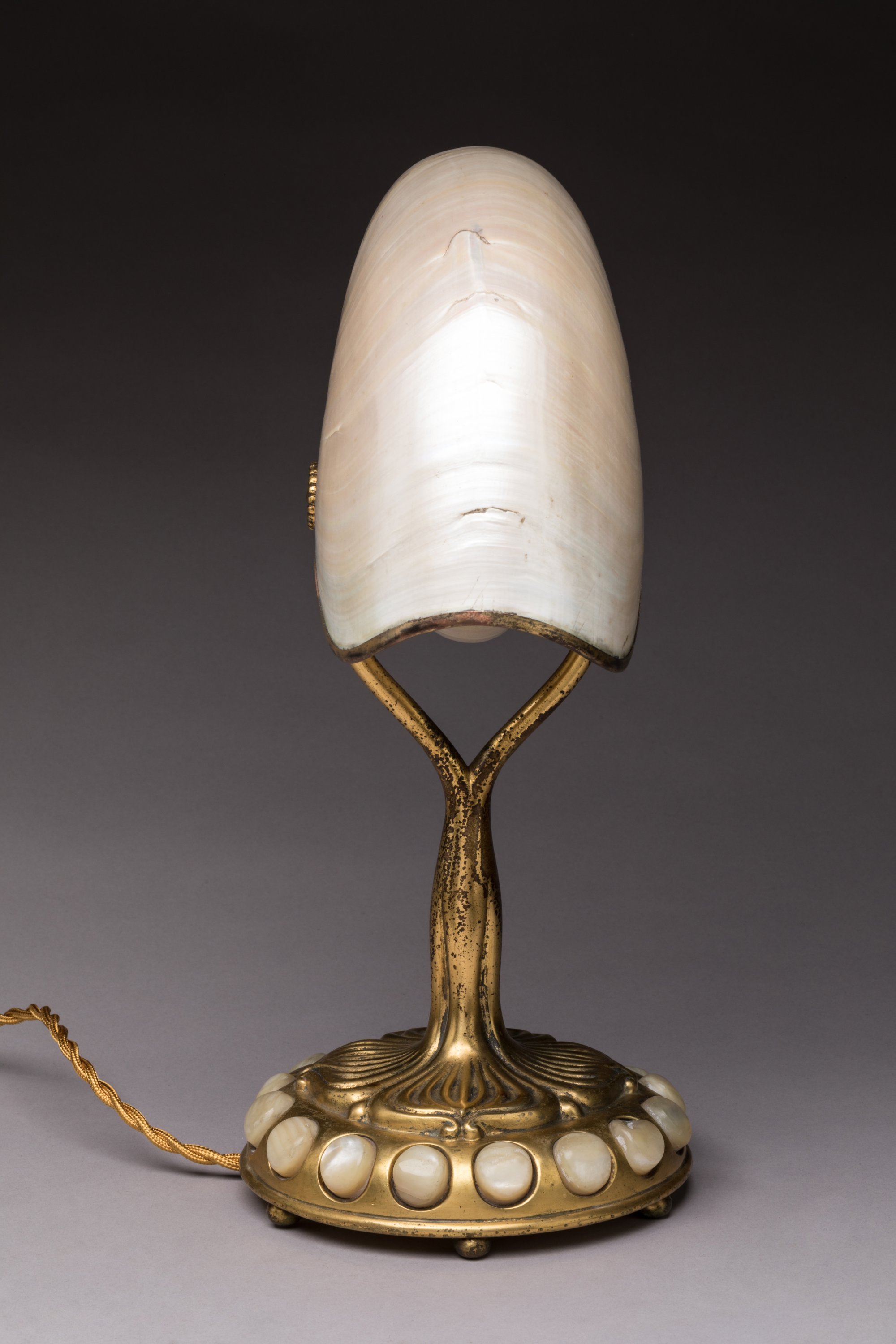 Nautile lamp, in gilt bronze and mother-of-pearl cabochons by Tiffany in New-York.
