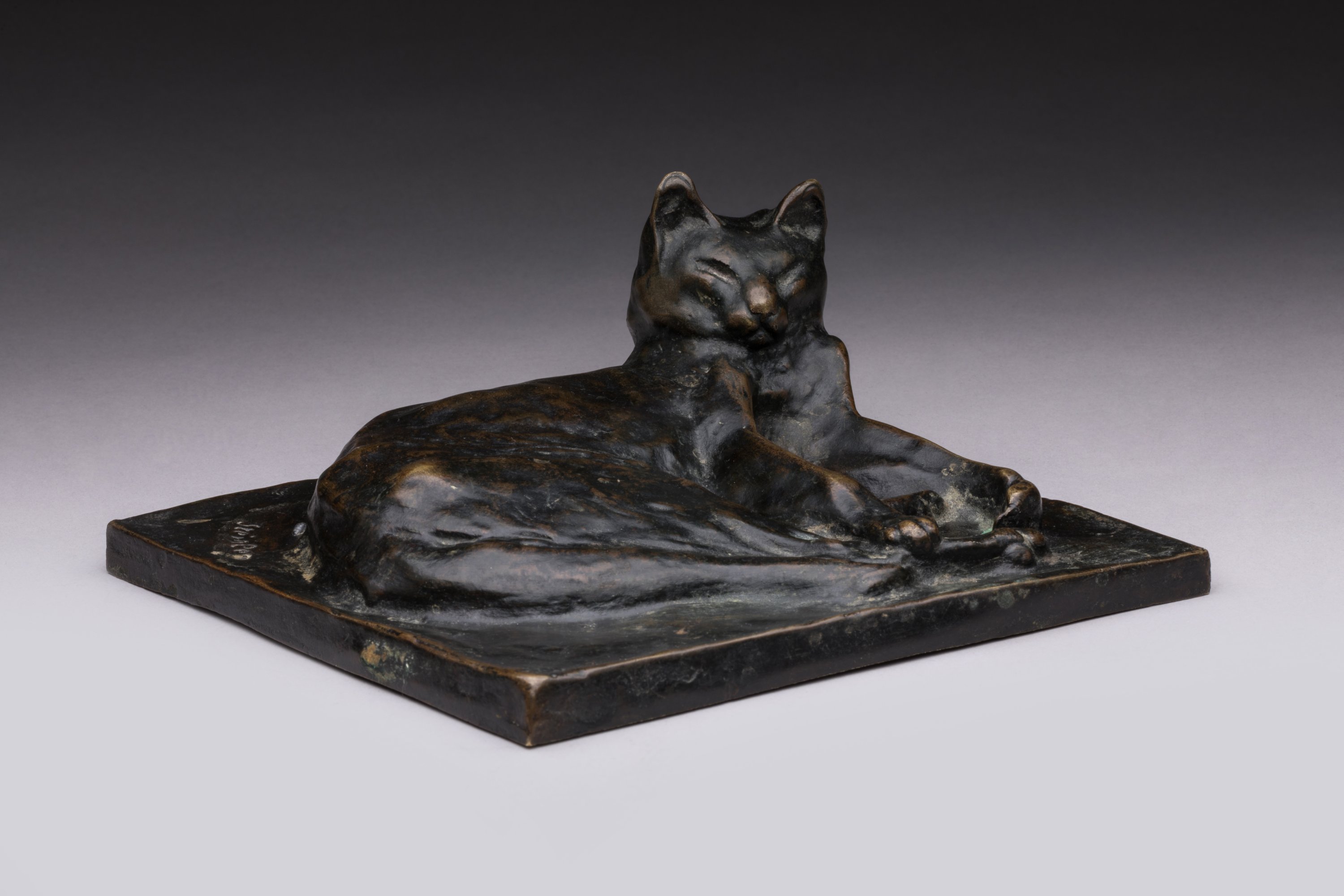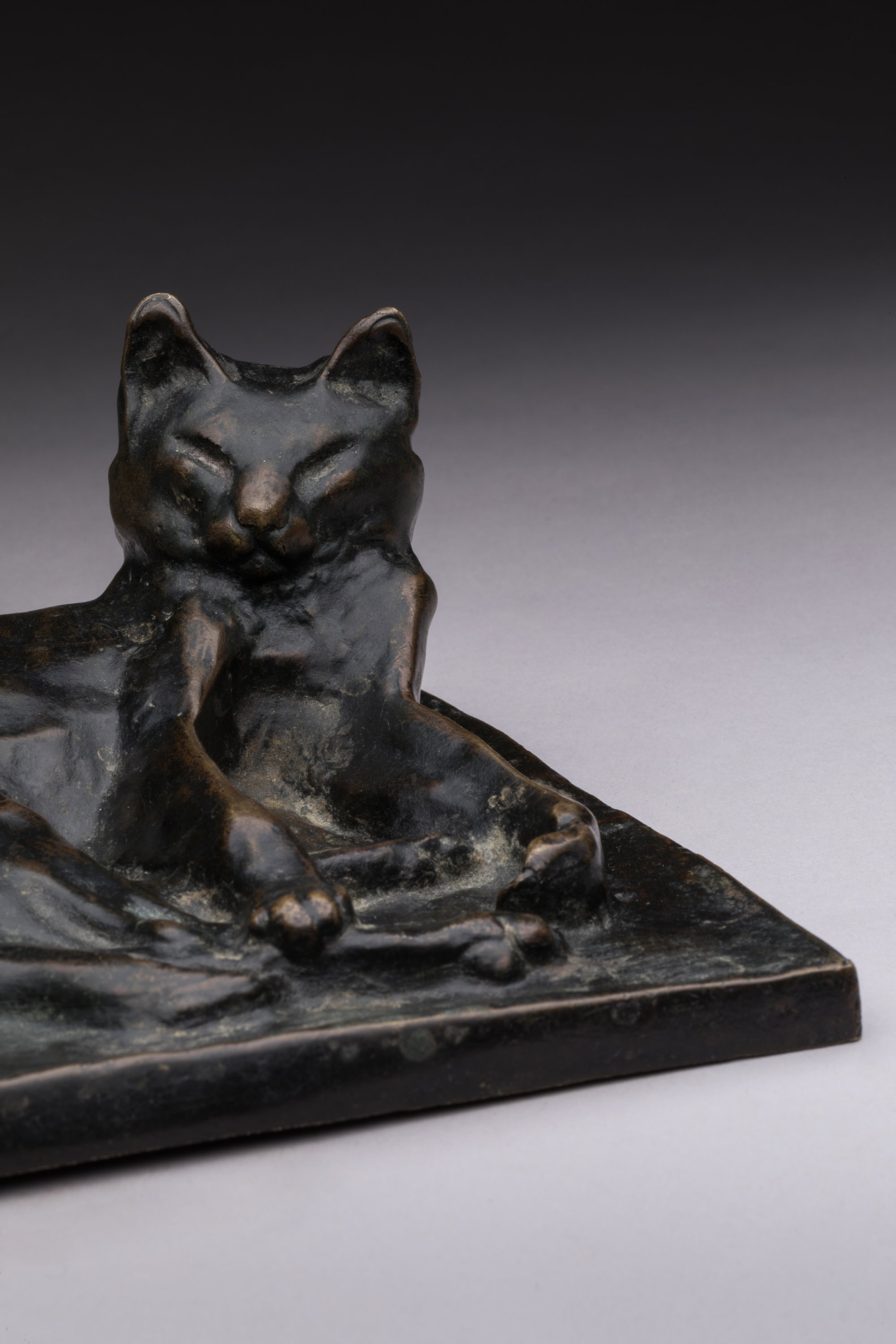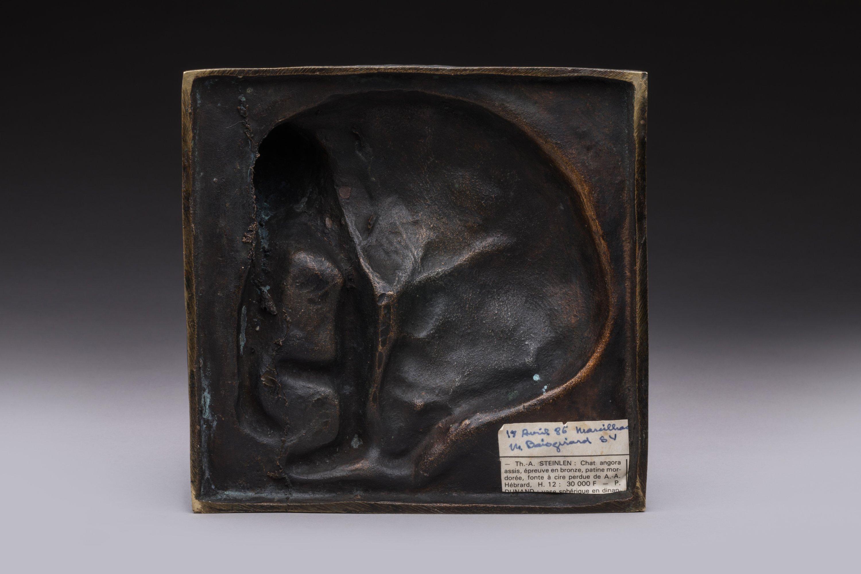 "Cat lying in a ball, head erect", circa 1905-1906, bronze without foundry mark by Steinlen.