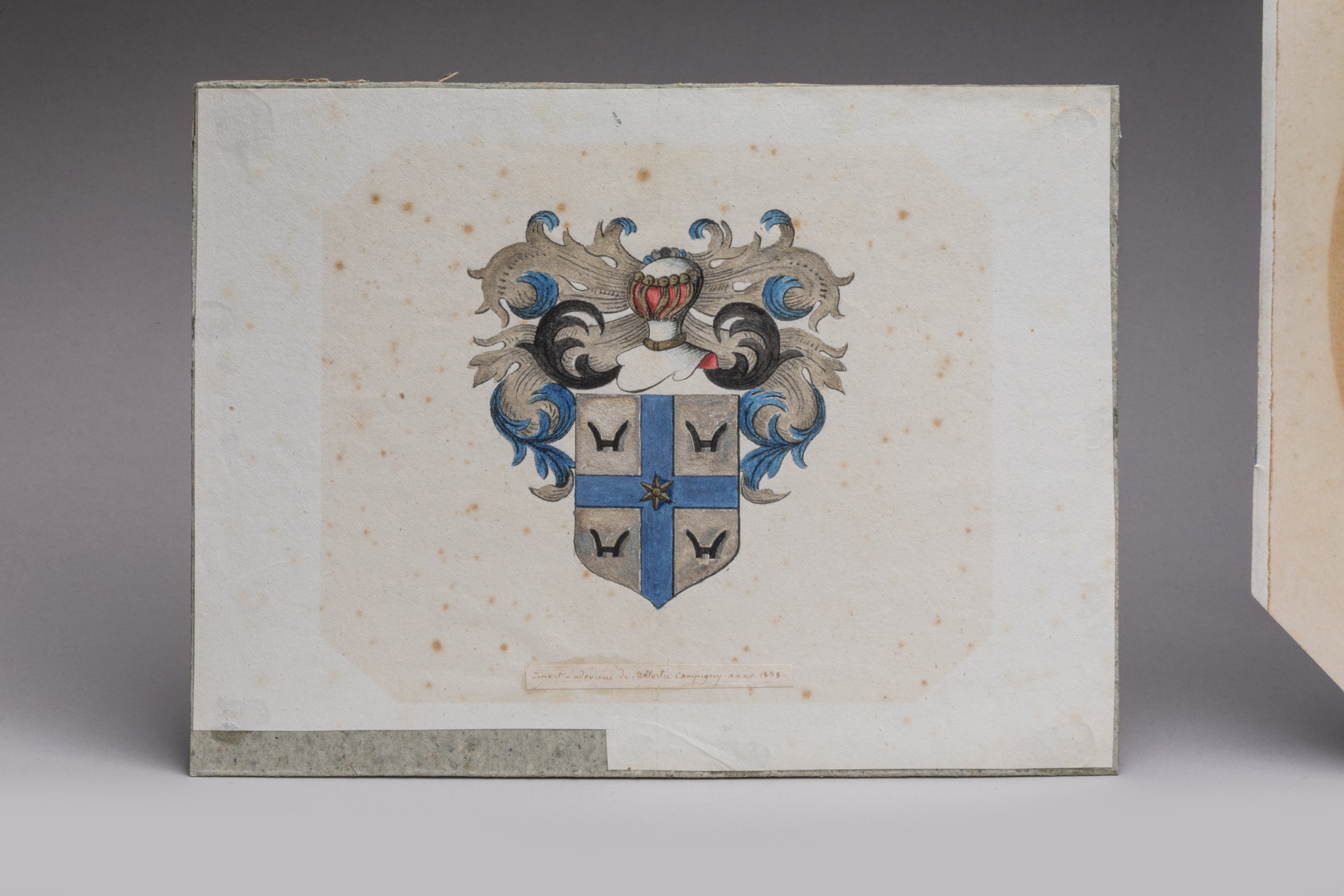 Un autre dessin de blason d'écartelé , en couleurs non identifié portant l'inscription "Pinxit Ludovicus de Malortie Compigny anno 1838", au format 16,3 x 21,6 cm, est également joint.
