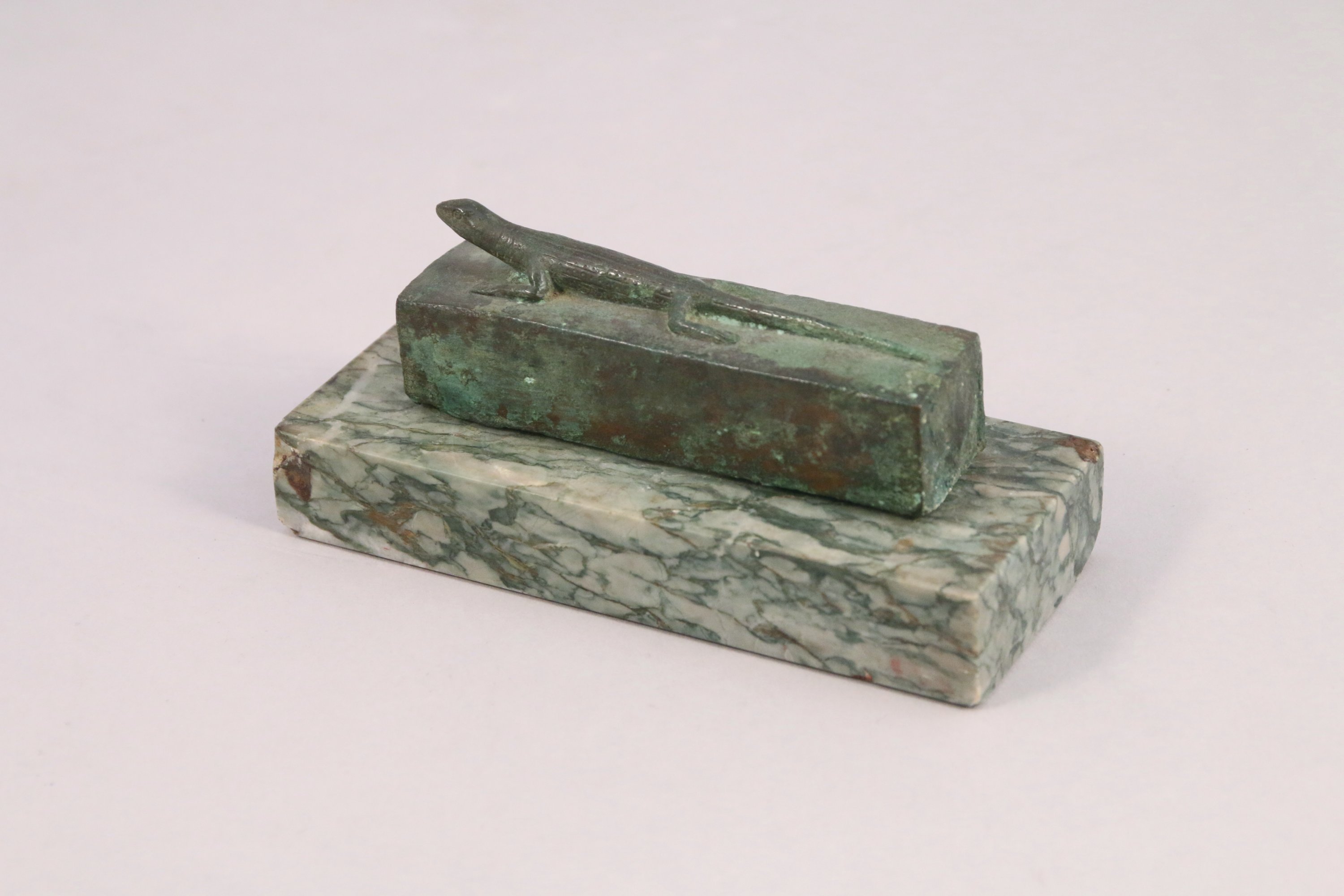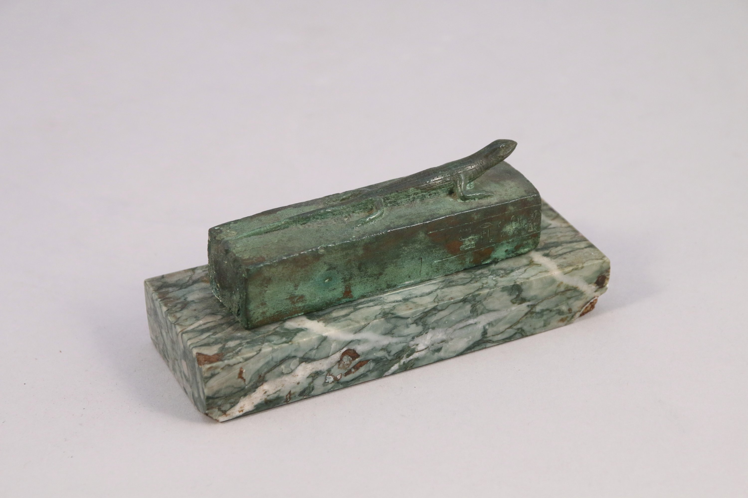 en bronze avec inscription hiéroglyphique sur deux côtés.