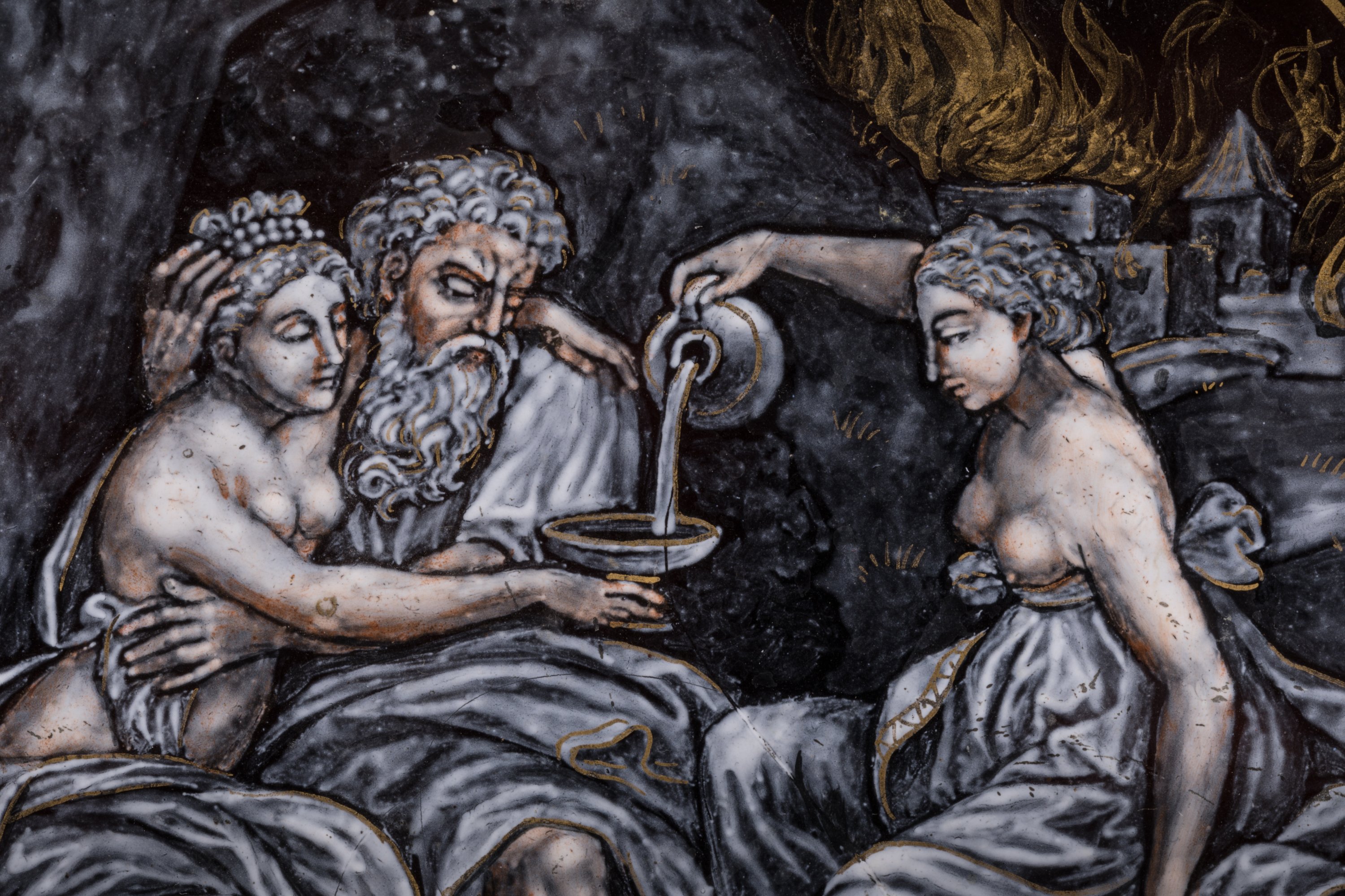 Plate of "Loth and his daugthers" enamel Limousin attributed to François Guibert. Second half of the 16th-early 17th century.