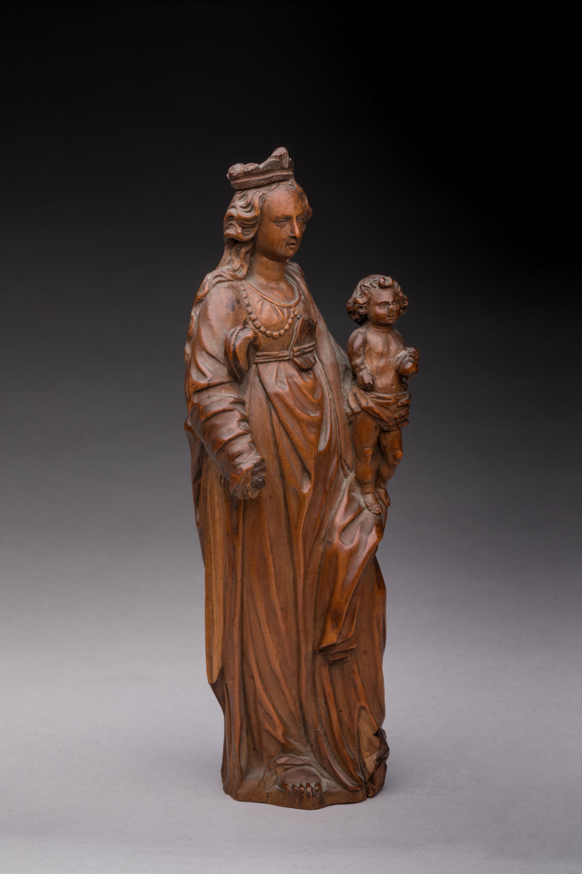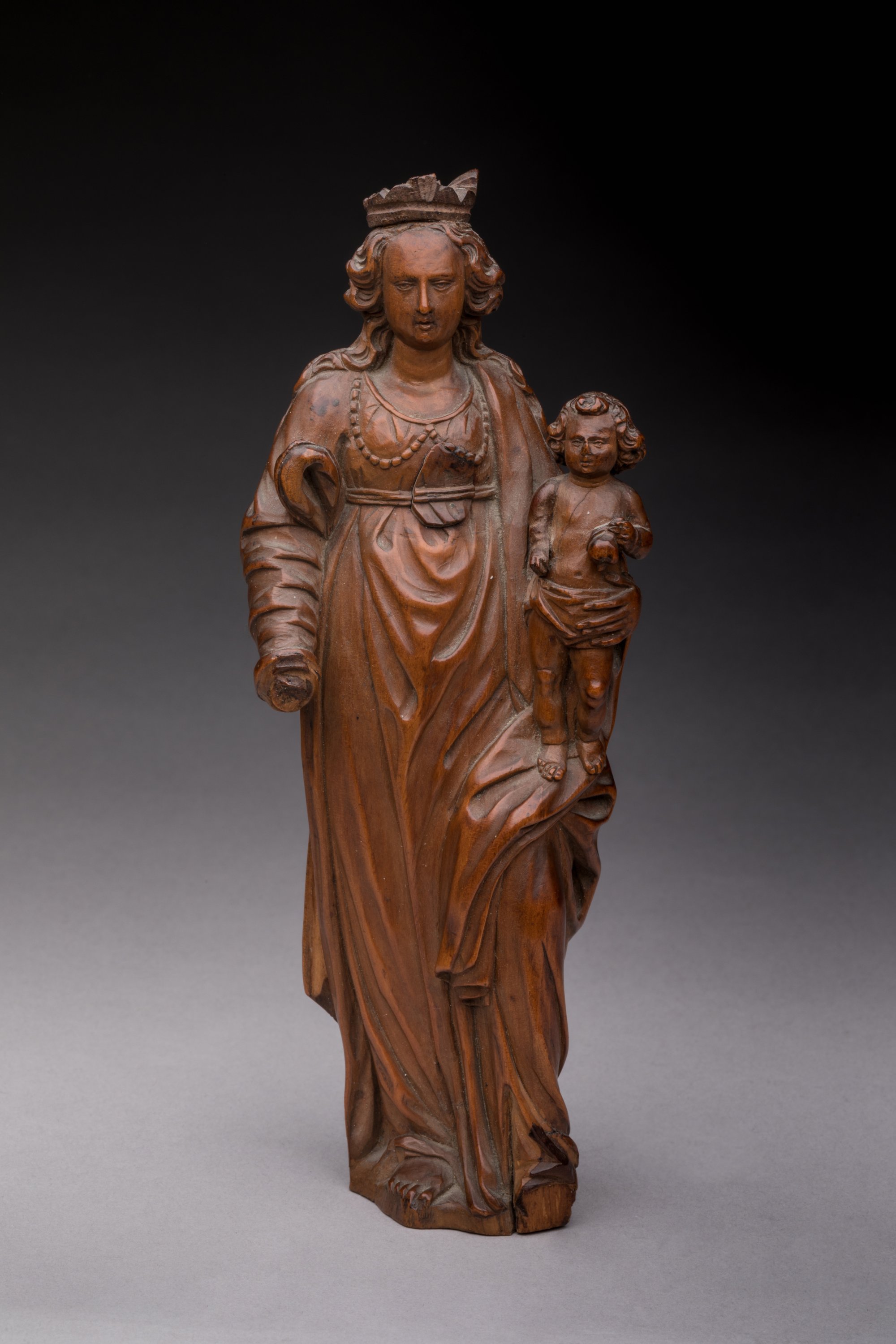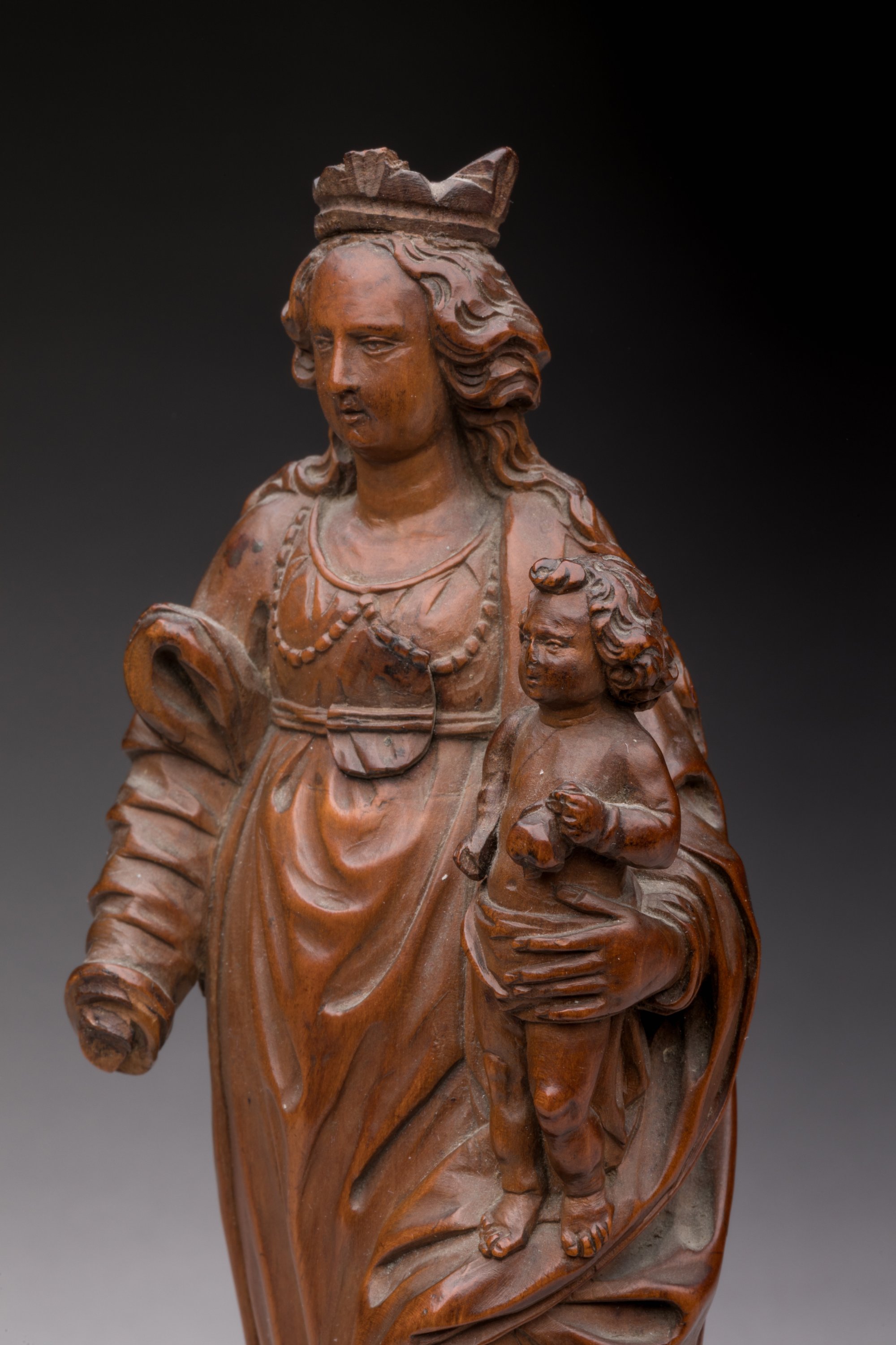 Virgin and child in boxwood carved from a Flemish or German school of the early 17th century.
