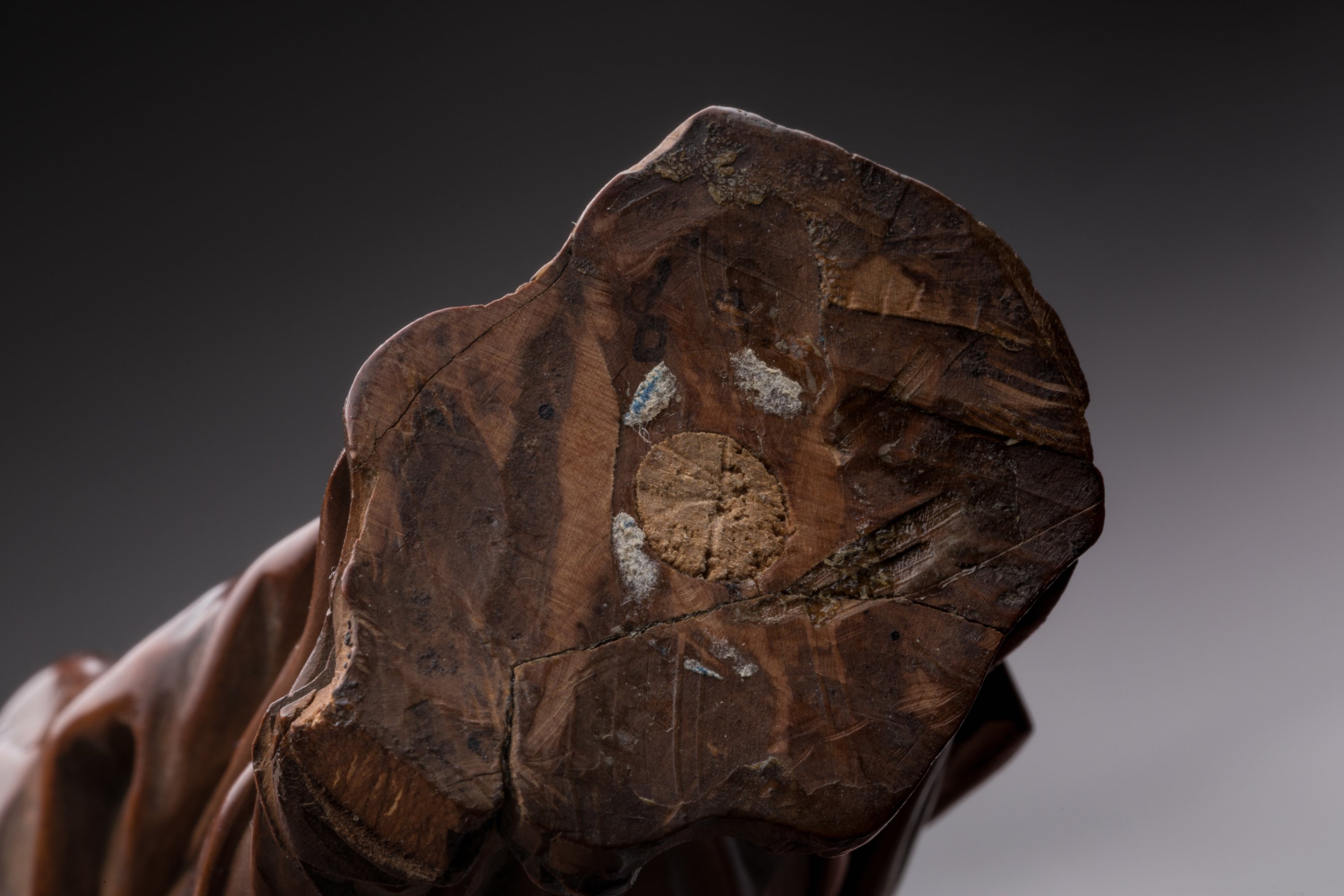 (main droite de la Vierge manquante, accidents à la couronne et à la base, ajout dune pièce de bois au niveau de la poitrine).