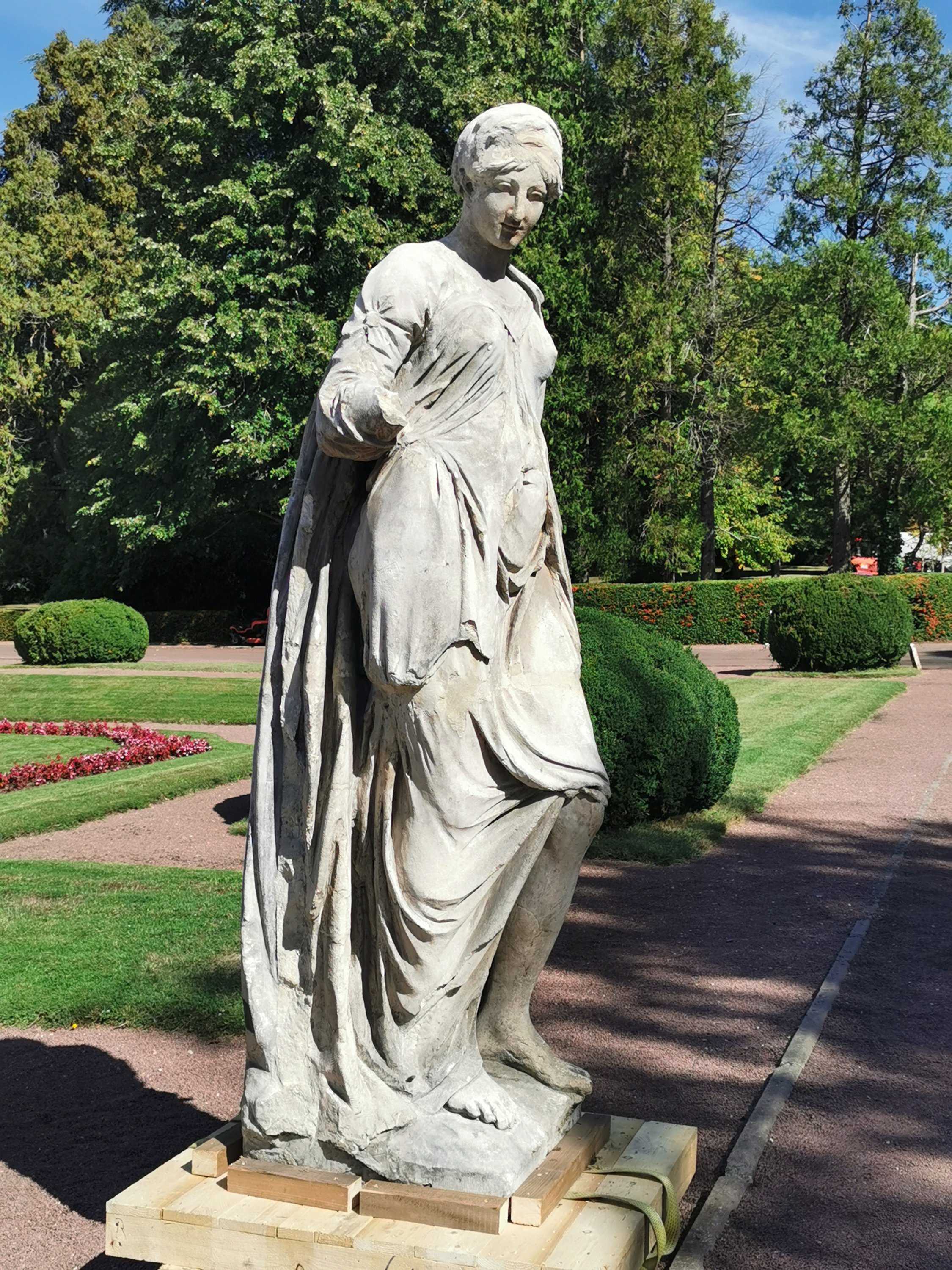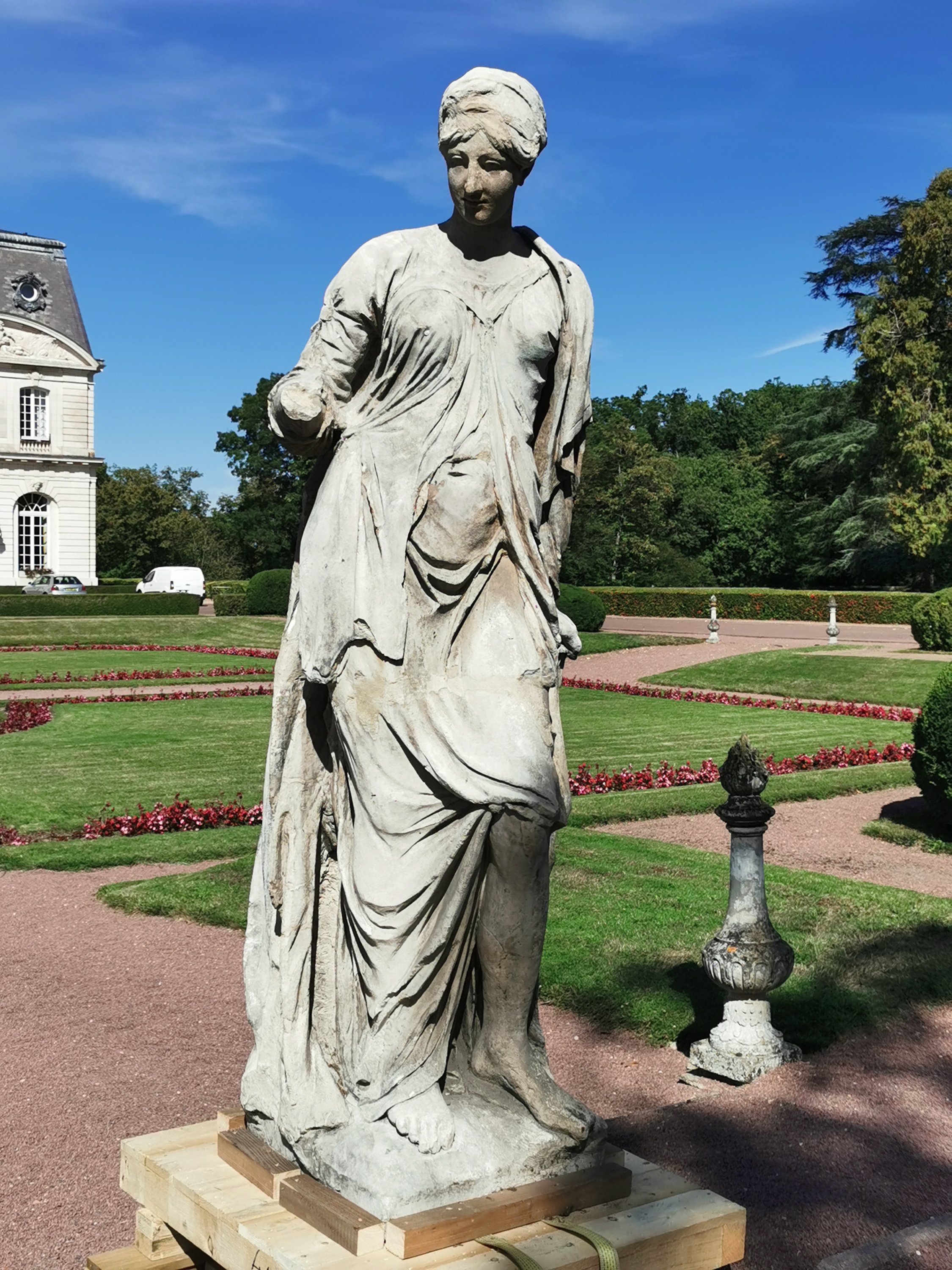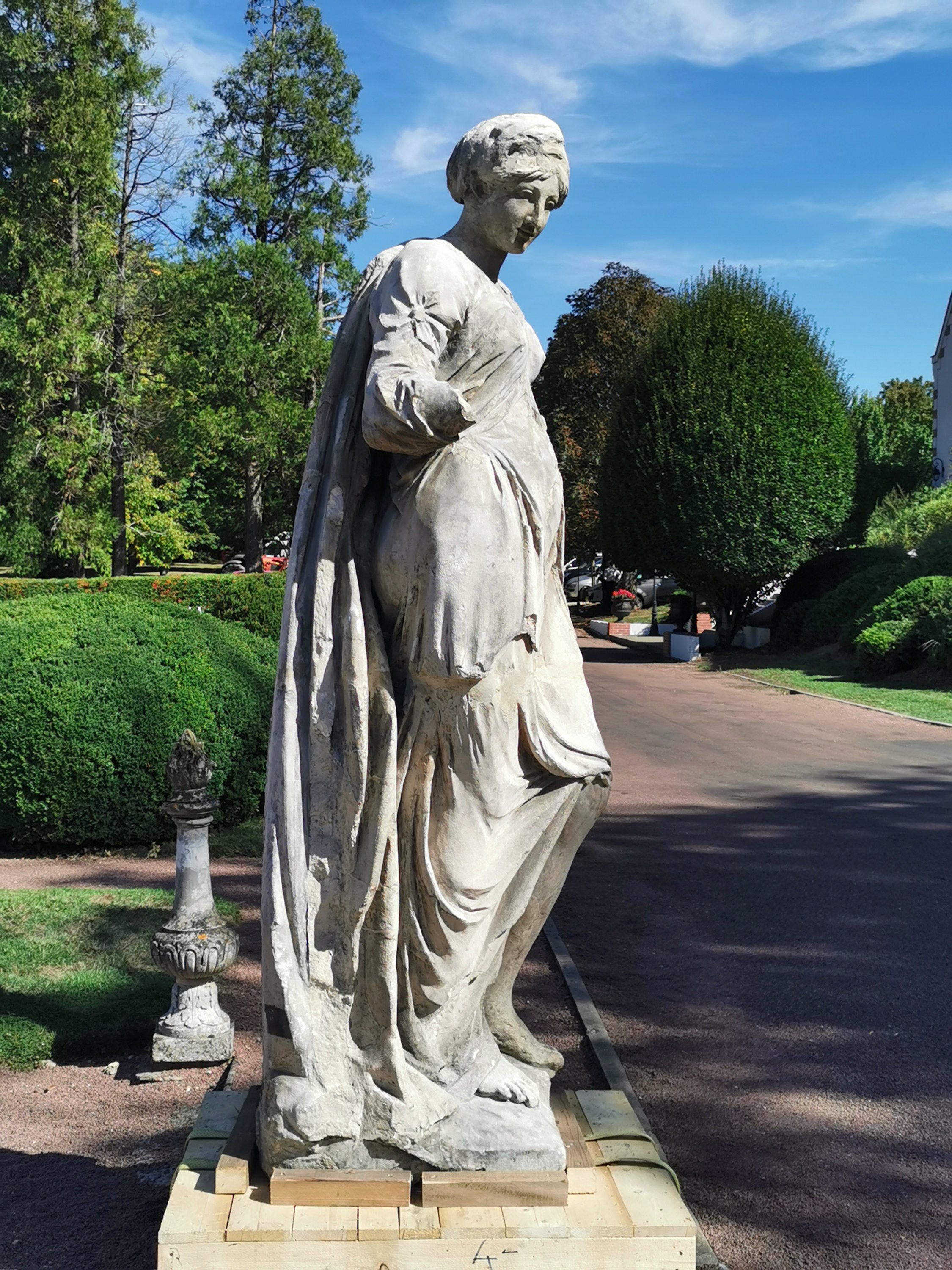 Female allegory in carved stone, probably from the French school of the late 18th century.