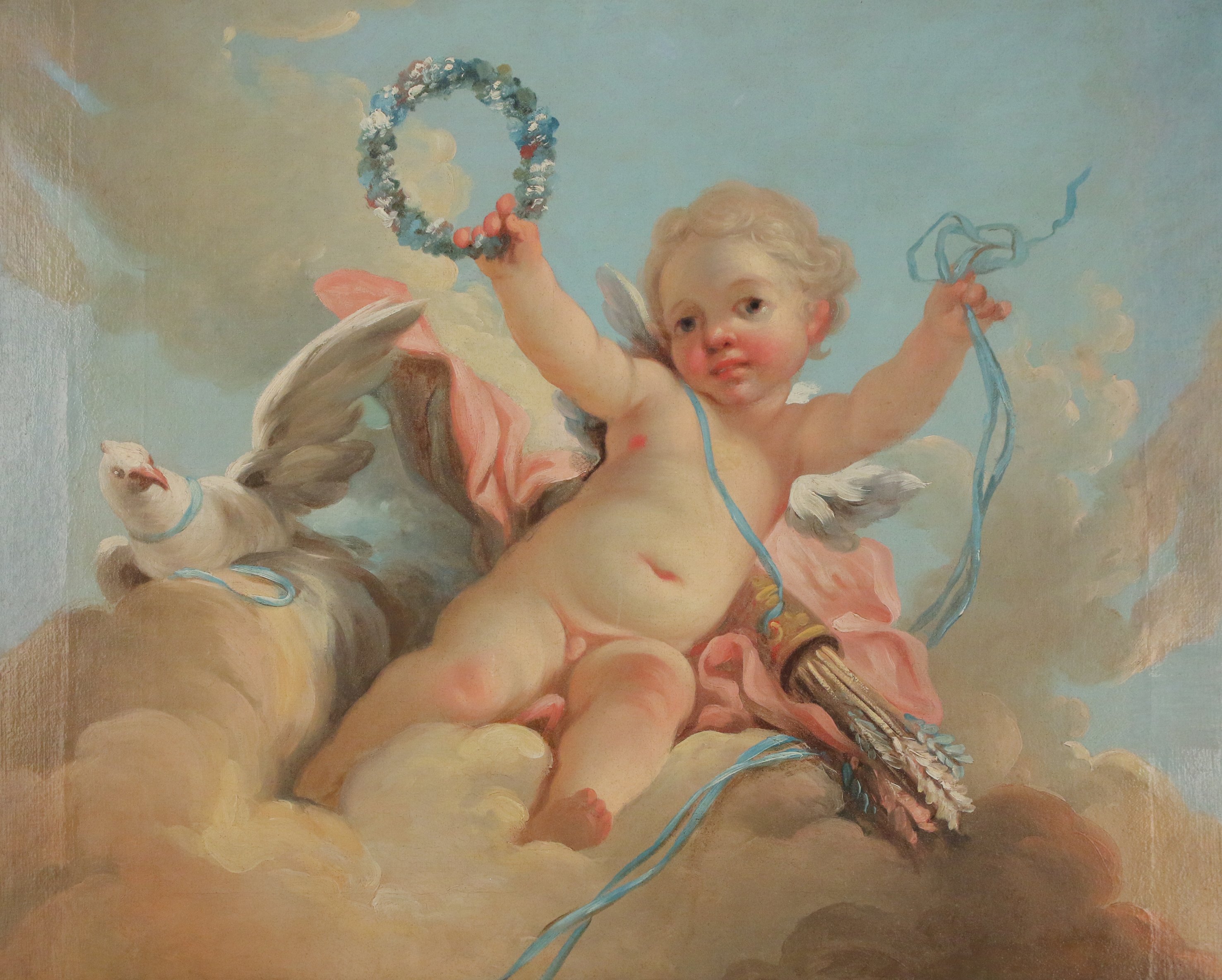 Notre Amour vainqueur peut en particulier être comparé à un autre putto, dans une position similaire, figurant sur un panneau du salon du graveur Gilles Demarteau (Paris, Musée Carnavalet).