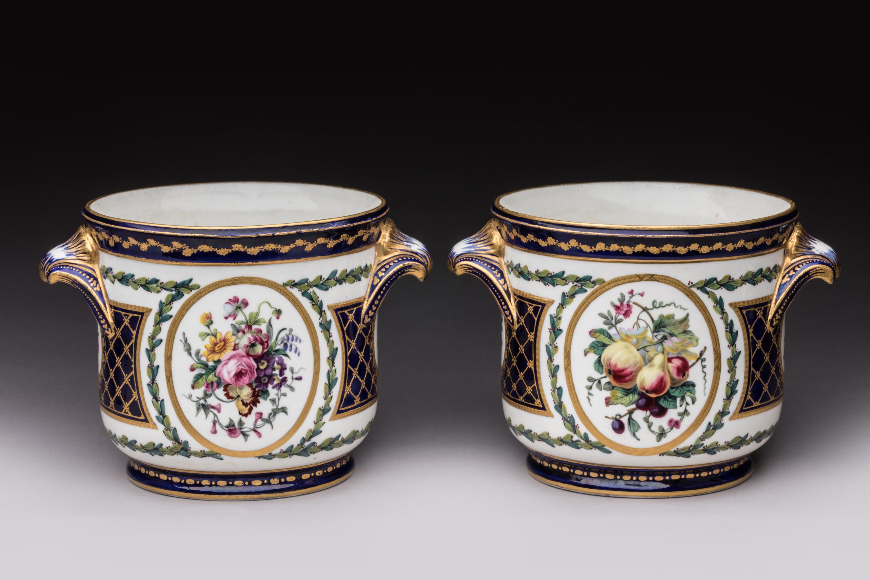 Pair of glass coolers in the Sèvres style. Apocryphal mark "A" for 1753.