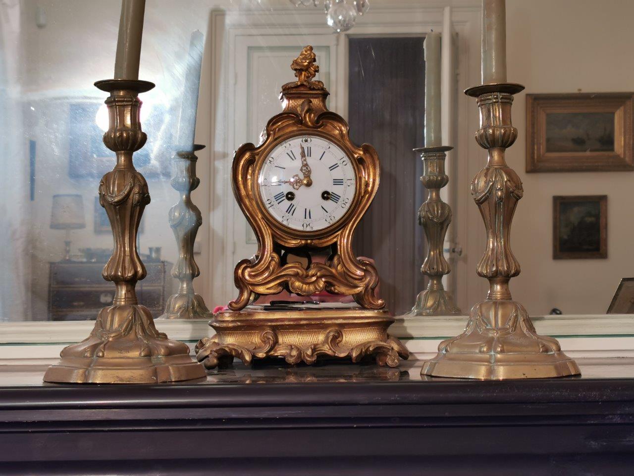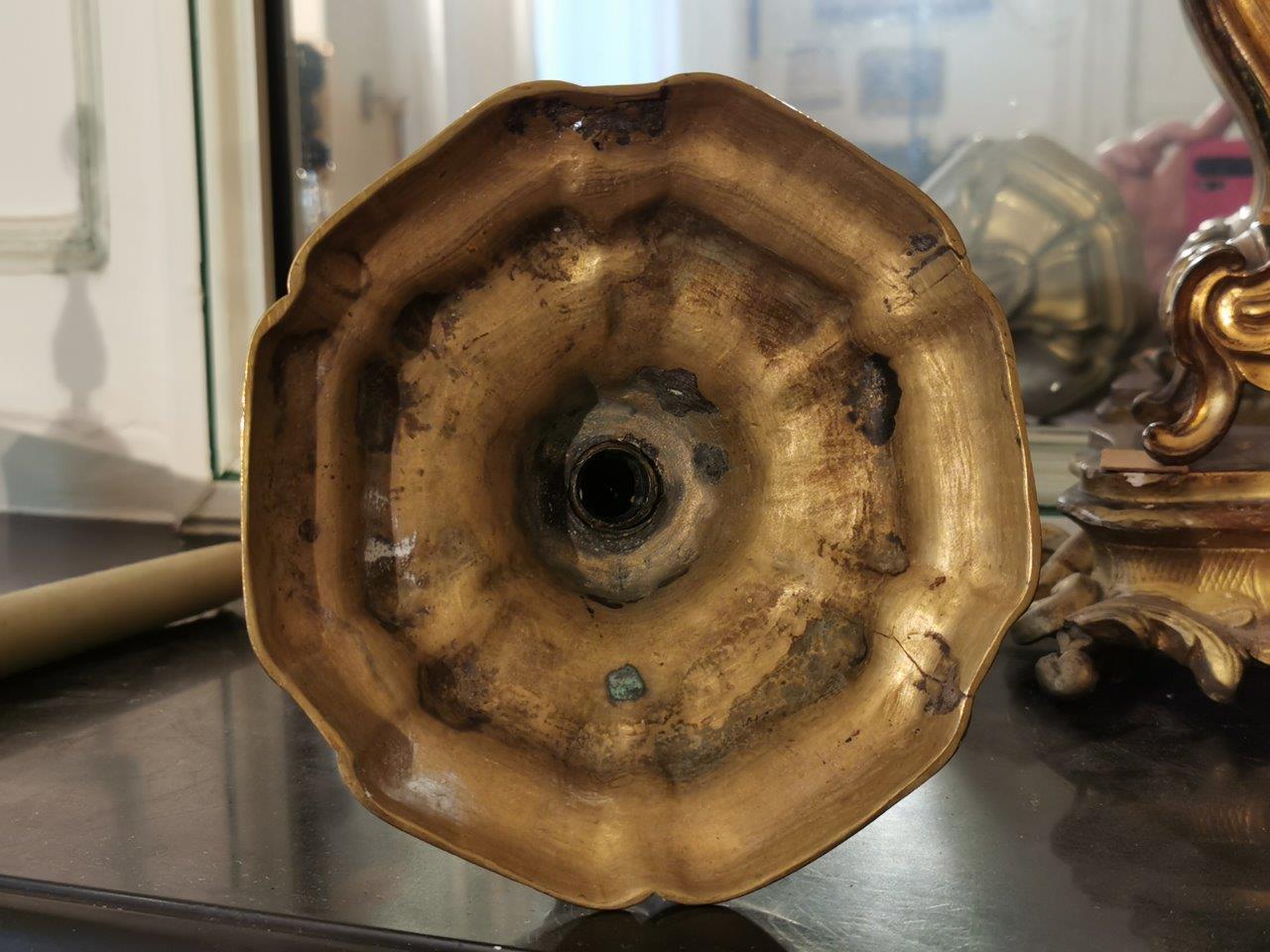 PAIRE de FLAMBEAUX en bronze doré à la forme mouvementée...