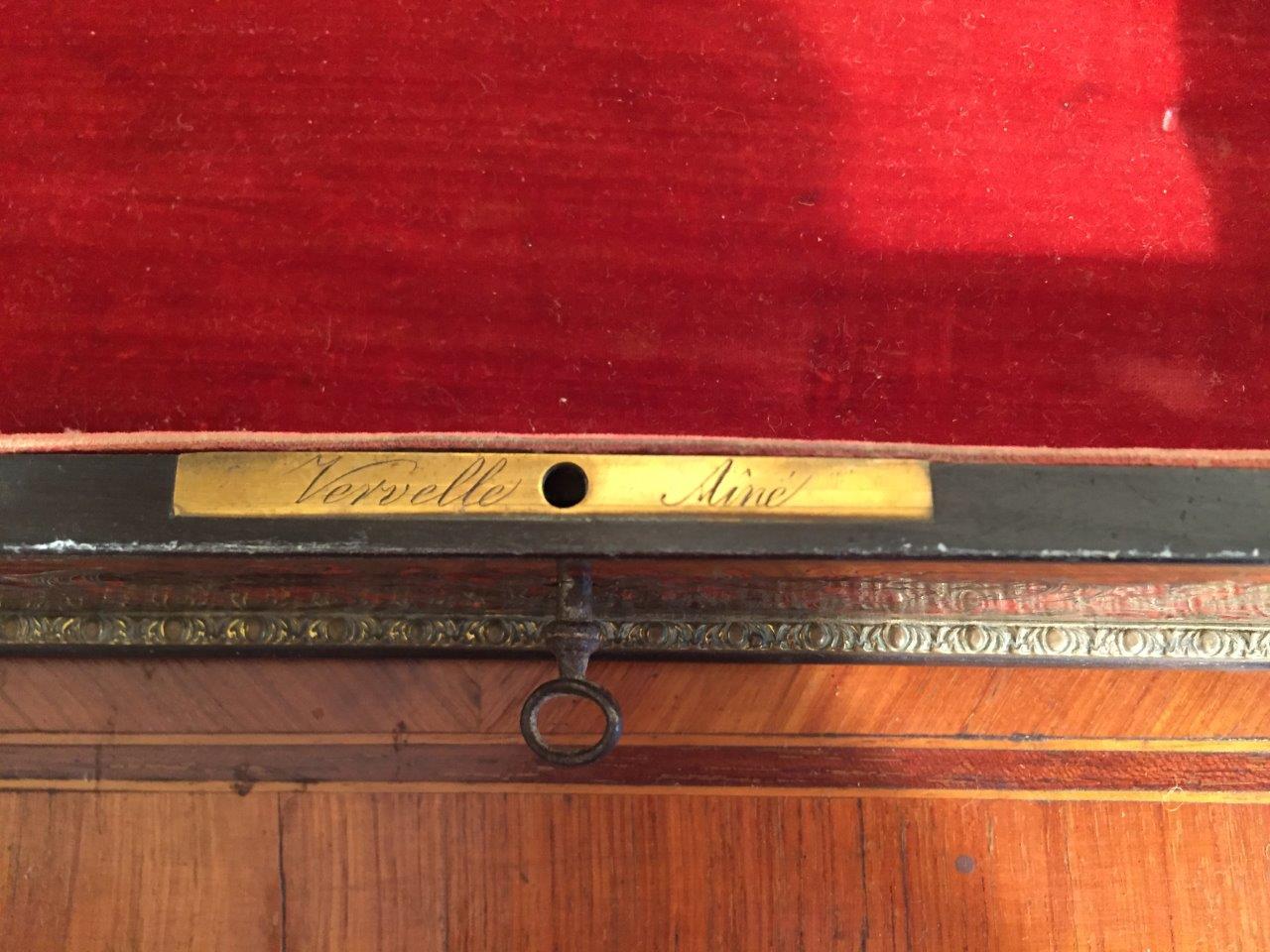 COFFRET en MARQUETERIE dite BOULLE à filet de laiton sur...
