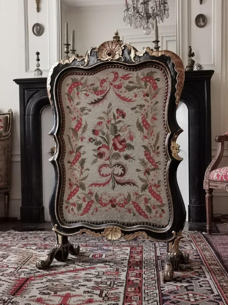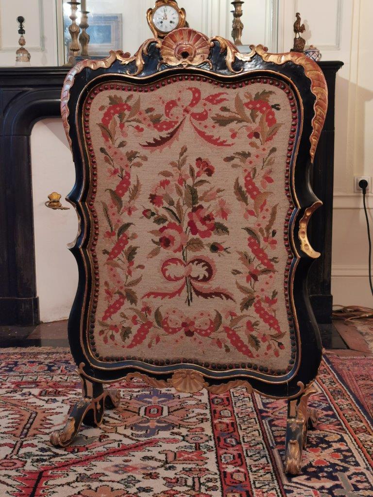ÉCRAN de CHEMINÉE à CHASSIS AMOVIBLE en bois mouluré laqué...