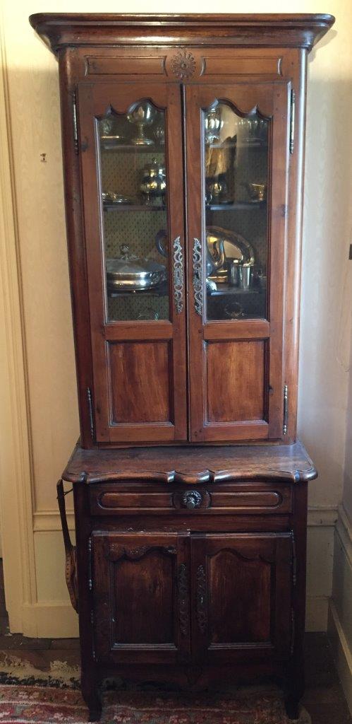 VITRINE à DEUX CORPS en chêne, la partie haute ouvrant...