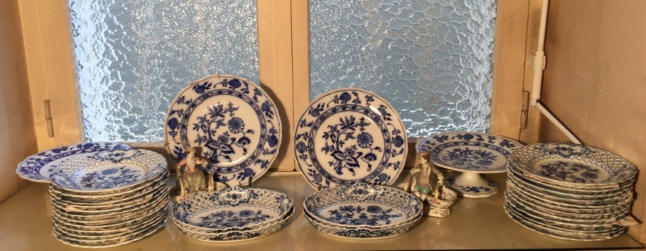 MEISSEN. Ensemble de deux ASSIETTES MONTÉES, deux ASSIETTES, quatre RAMEQUIN ajourés de croisillon et vingt-quatre petites ASSIETTES à croisillons.