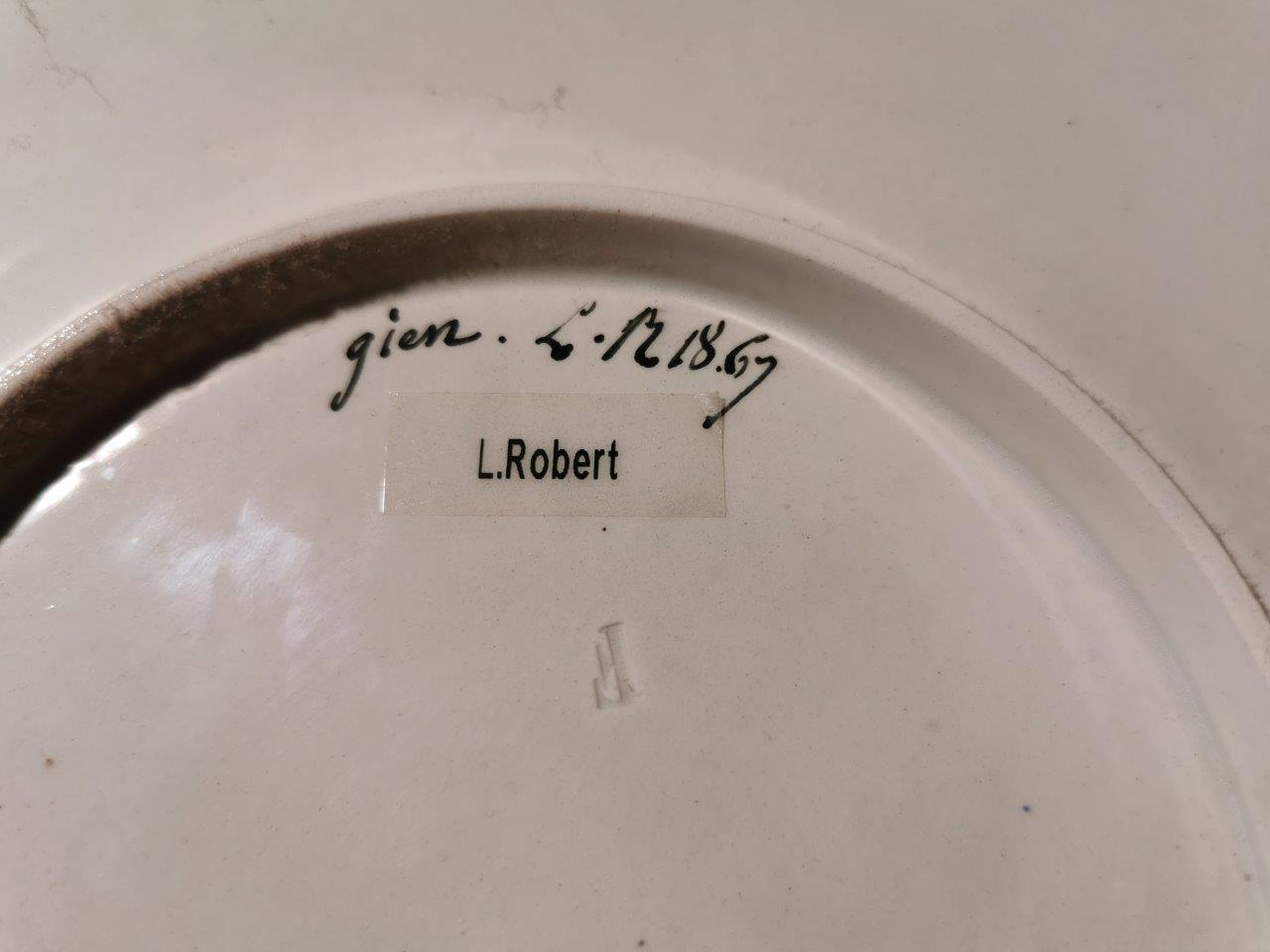 GIEN. L. ROBERT. PLAT en faïence émaillée représentant une marine,...