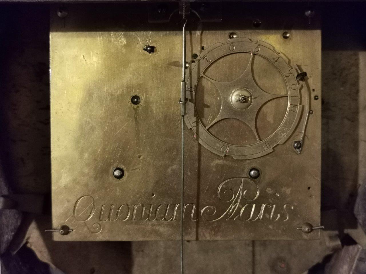 Signé "Quoniam" et situé à Paris sur le cadran et sur la platine du mécanisme.