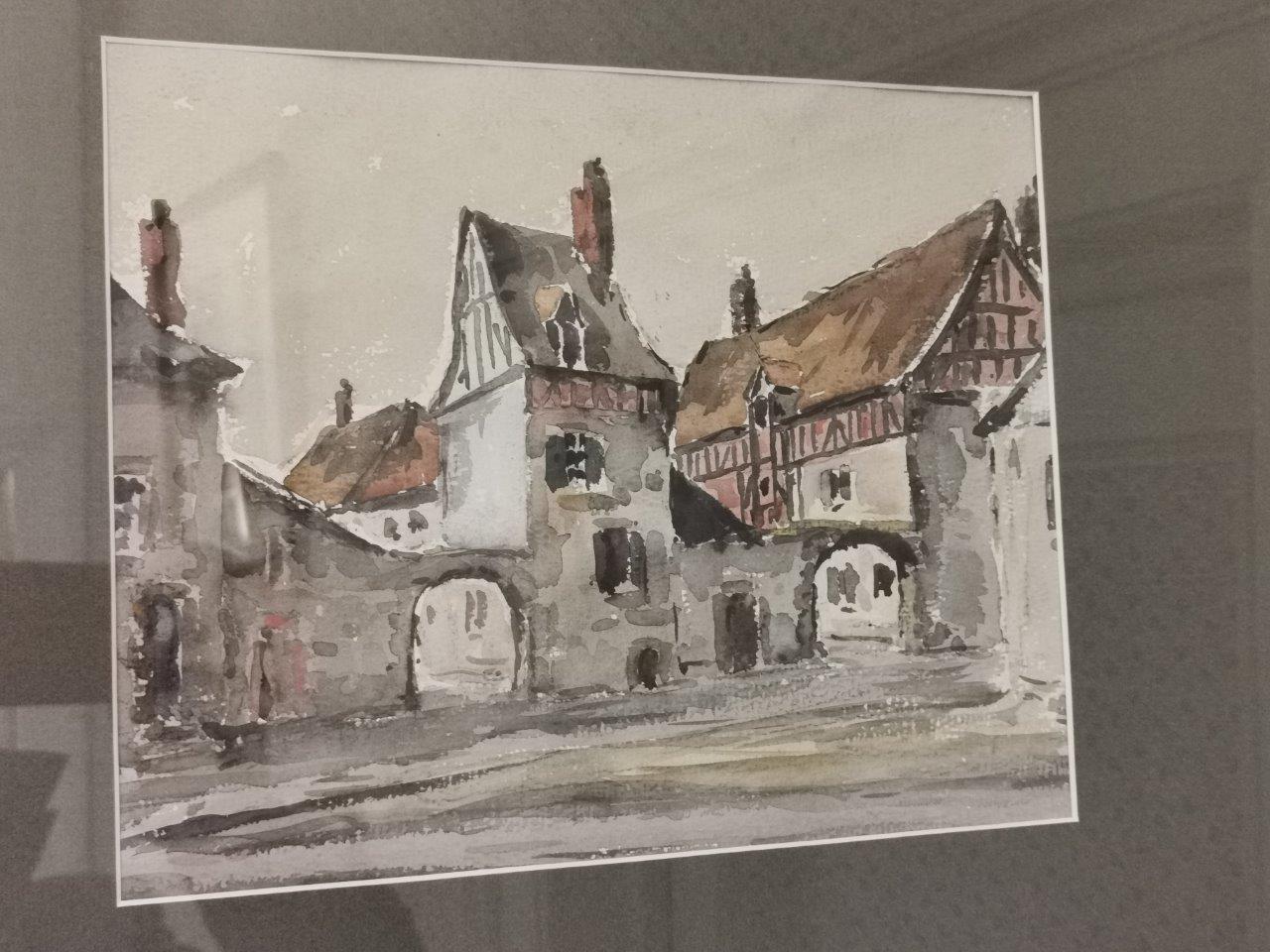 Dans l’anti-chambre JOINT : Guy de RUBERCY, Le pont de Gien, aquarelle, Haut. 13, Larg. 20 cm.