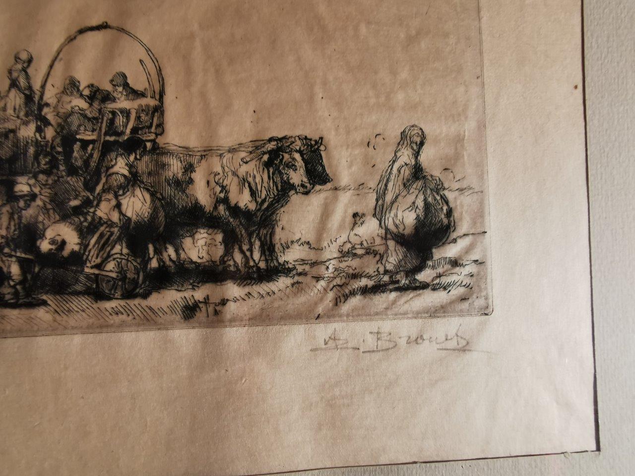 - La charrette, belle eau forte par A. Brouet contresignée justifiée épreuve dessai 4/4.