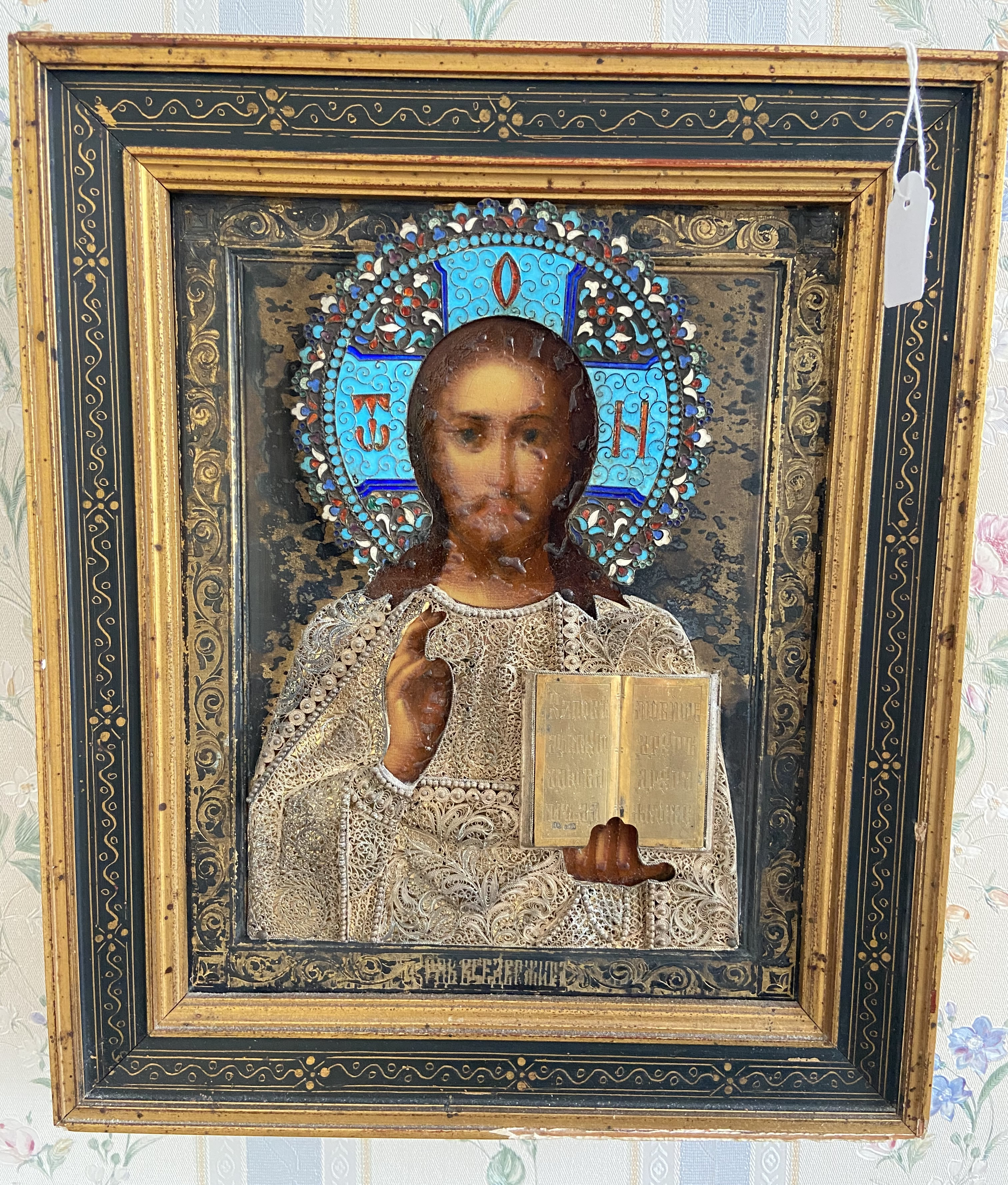 ICONE. CHRIST bénissant et VIERGE de tendresse. Paire huile sur...