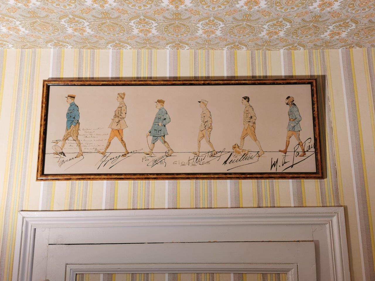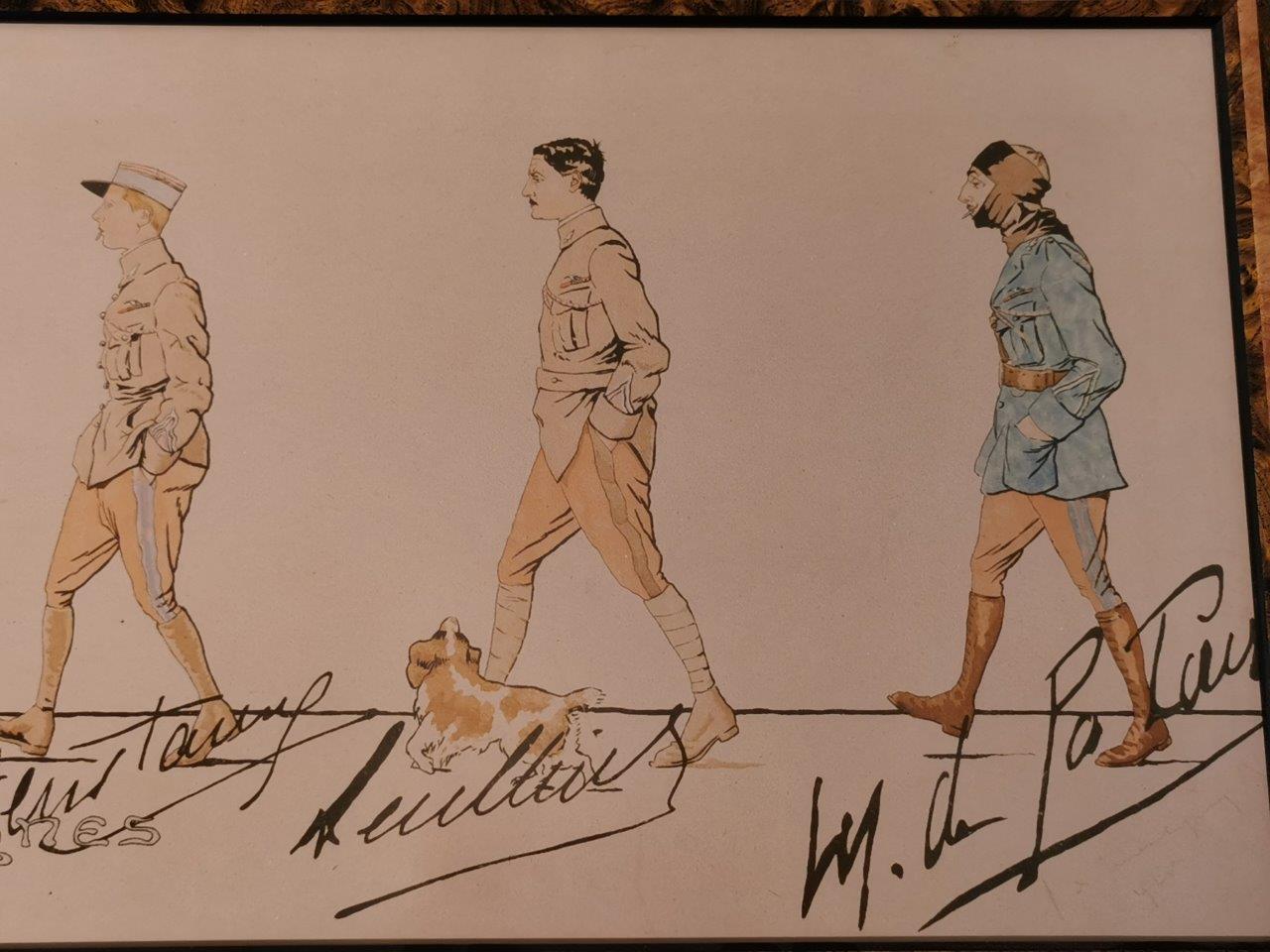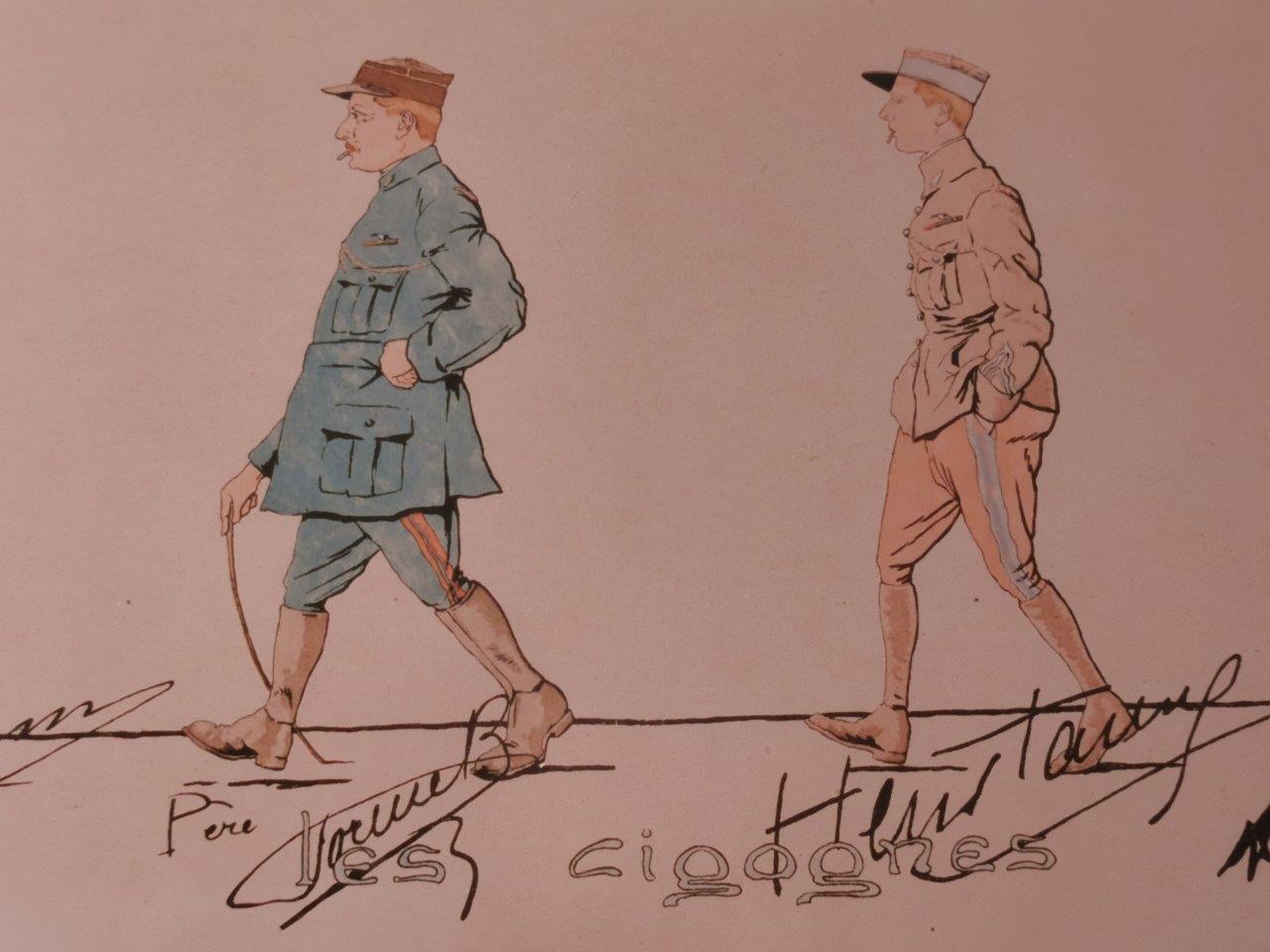 Reproduction d'après la lithographie éditée chez Devambez avec « Au capitaine aviateur Colcomb observateur et pilote de chasse pendant la grande guerre en souvenir des ses camarades et des patrouille de reconnaissance des Cigognes. Avec toute l’estime et l’admiration de son chef et son amitié. Commandant Brocard ».