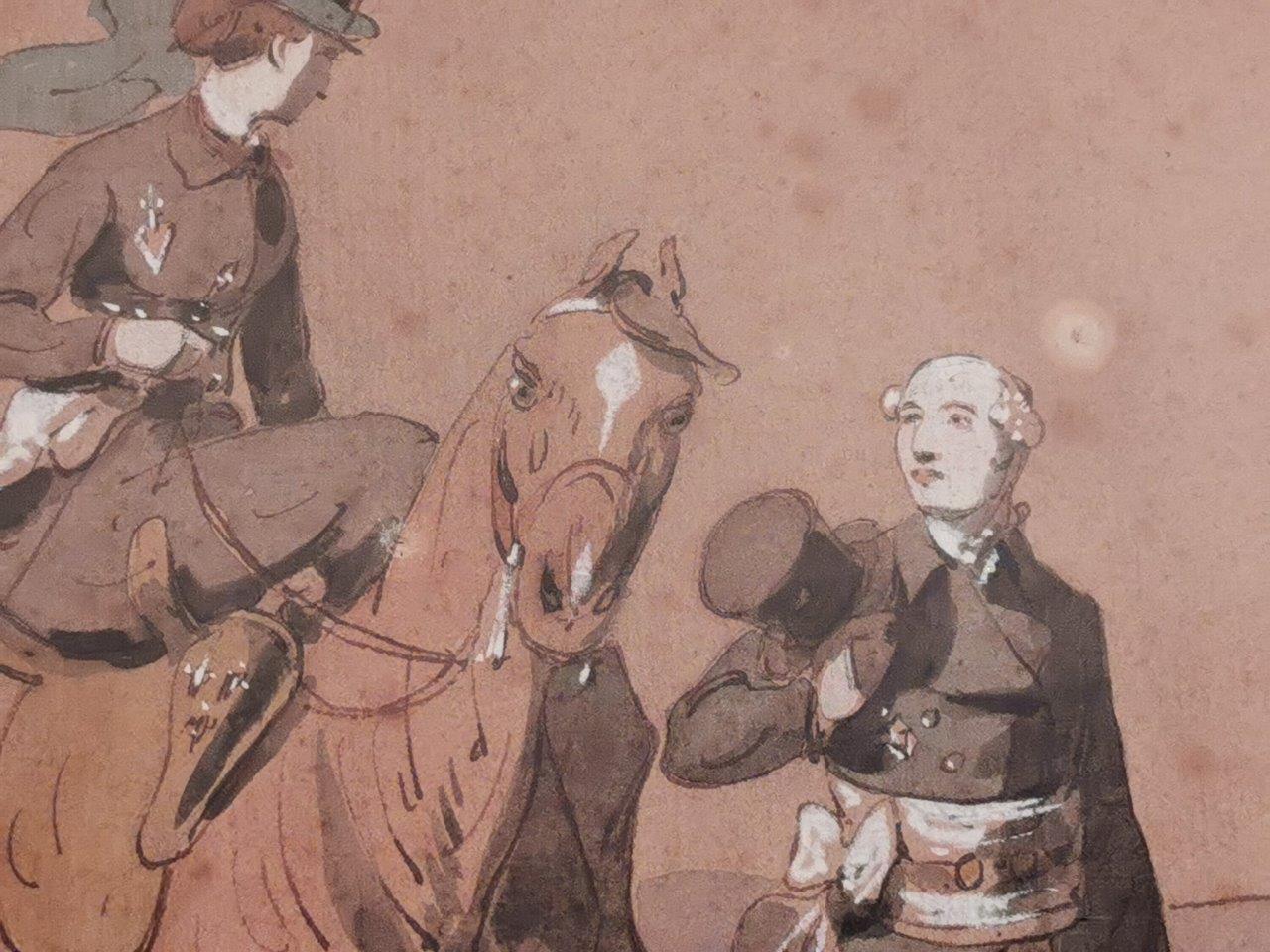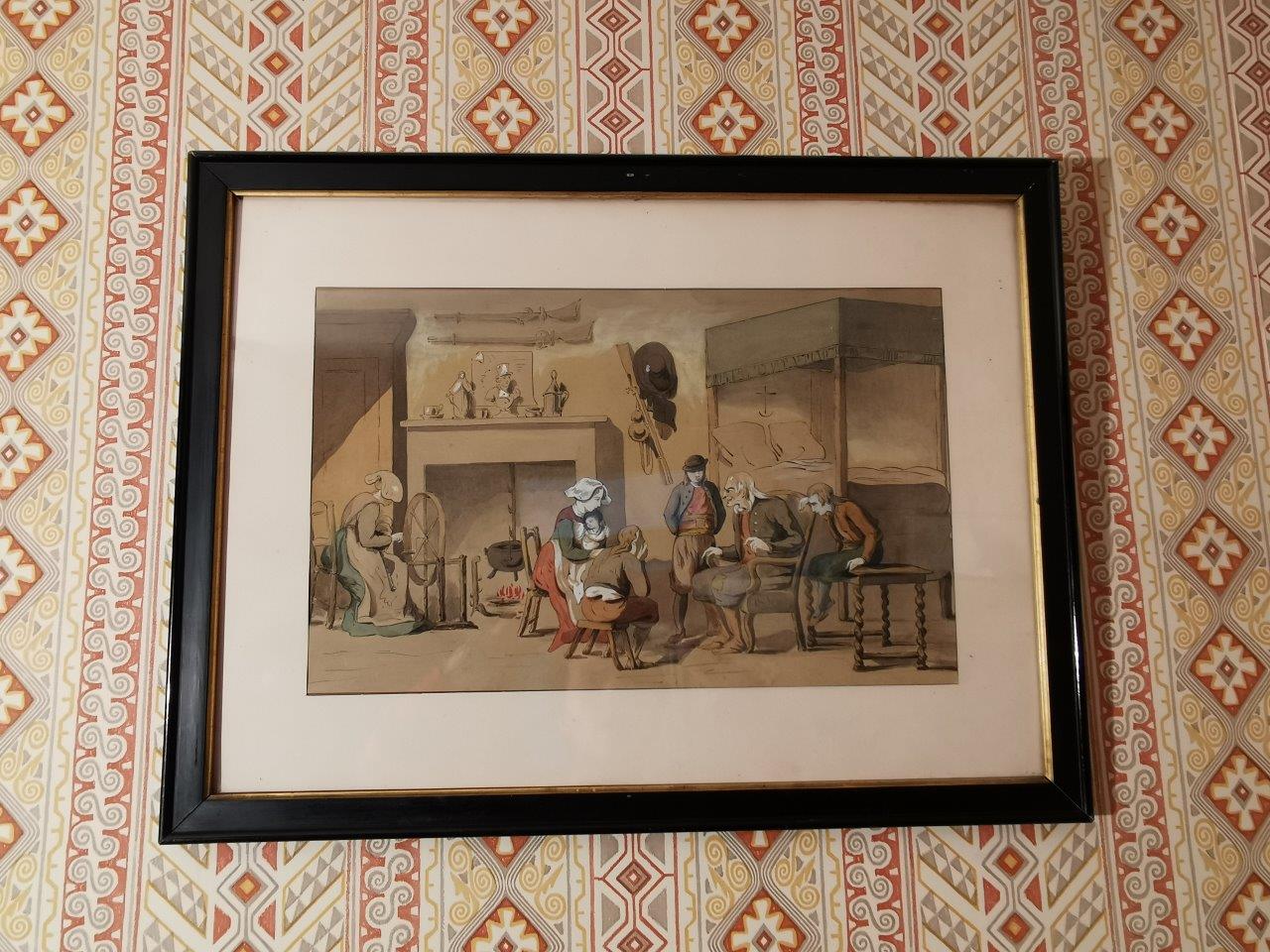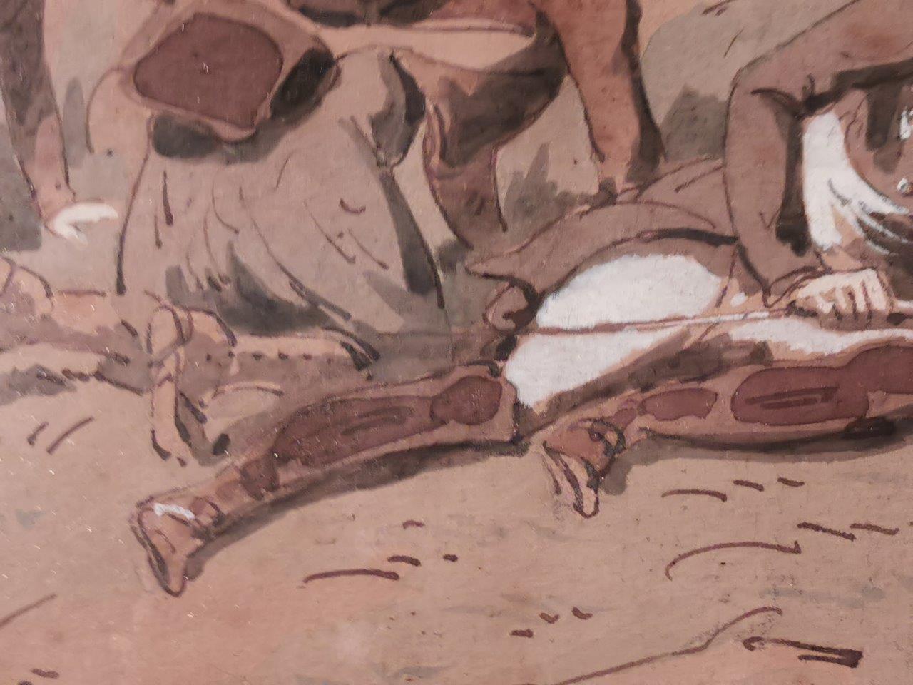 JOINT : Dans le goût de Septime LE PIPPRE (1833-1871), Le narracteur, aquarelle monogrammée JR (29,5 X 46,5 cm.).