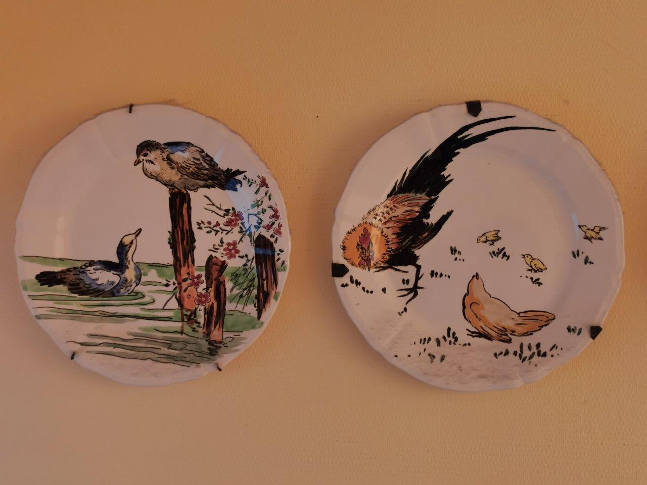 GIEN. QUATRE ASSIETTES au décor de volatiles japonisant.