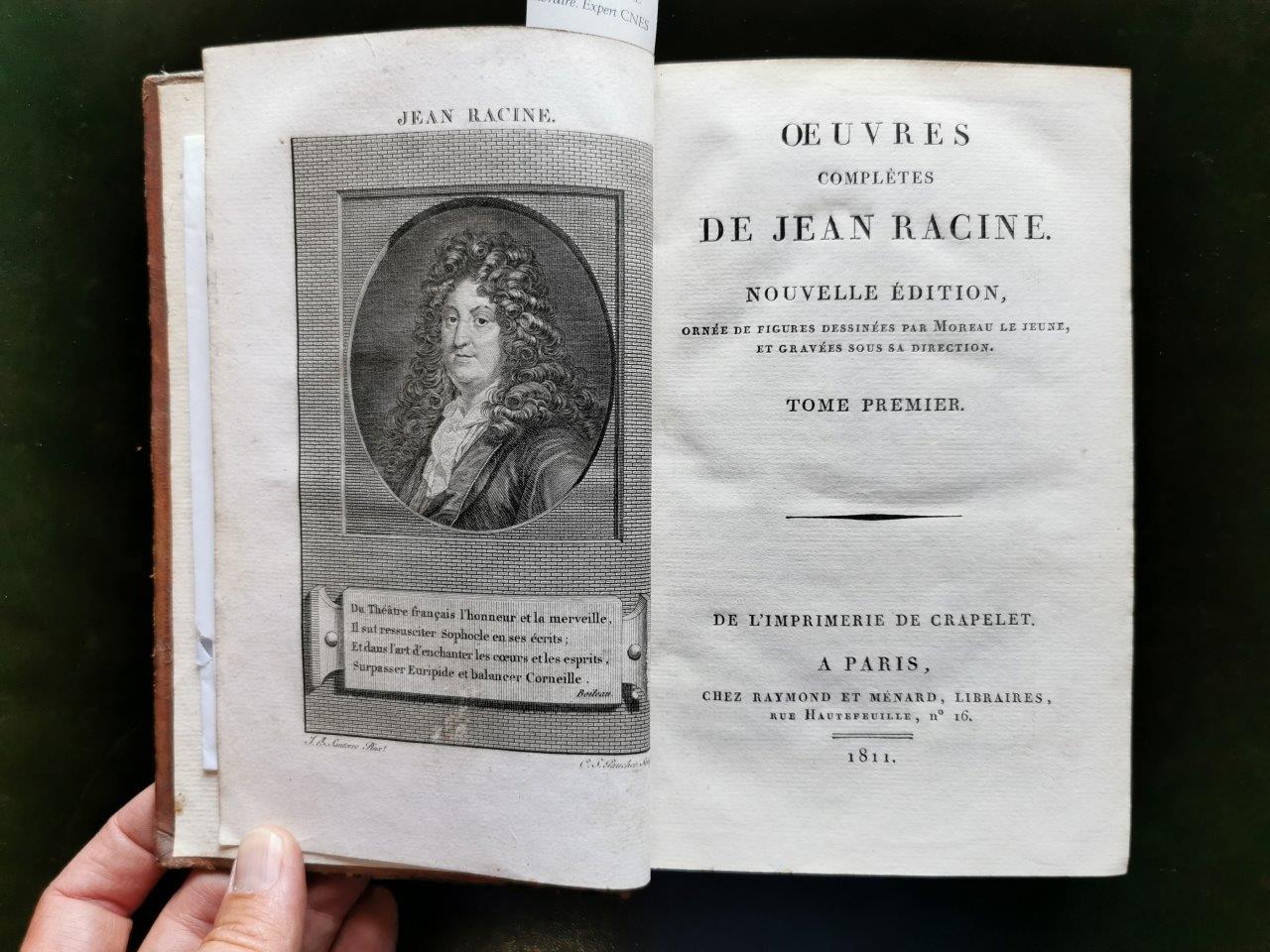 - Racine : Œuvres complètes. Nouvelle édition illustrée de figures de Moreau le Jeune. Paris, Crapelet, 1811. 4 vol. in-8, pleine basane flammée du temps