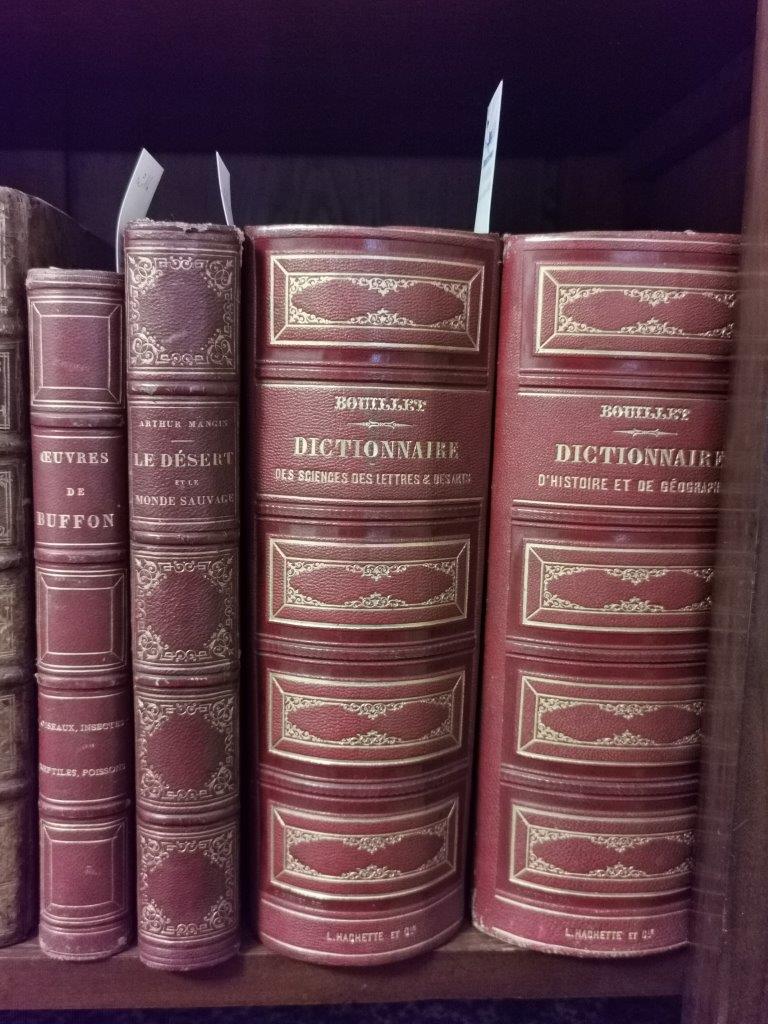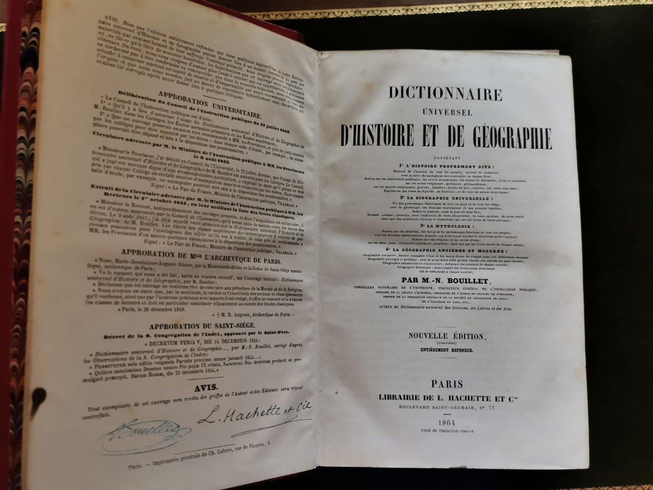 -Bouillet : Dictionnaire des sciences et des arts. Dictionnaire d’histoire et de géographie. Paris, Hachette, 1864 et 1867. 2 forts volumes gd in-8, ½ chagrin rouge. Reliures de l’éditeur.