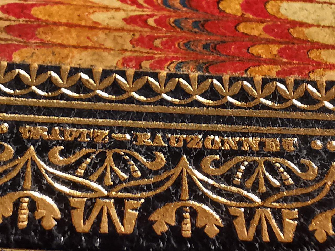Quadruple encadrement de roulettes intérieures. Toutes tranches dorées. Reliure signée Trautz-Bauzonnet.