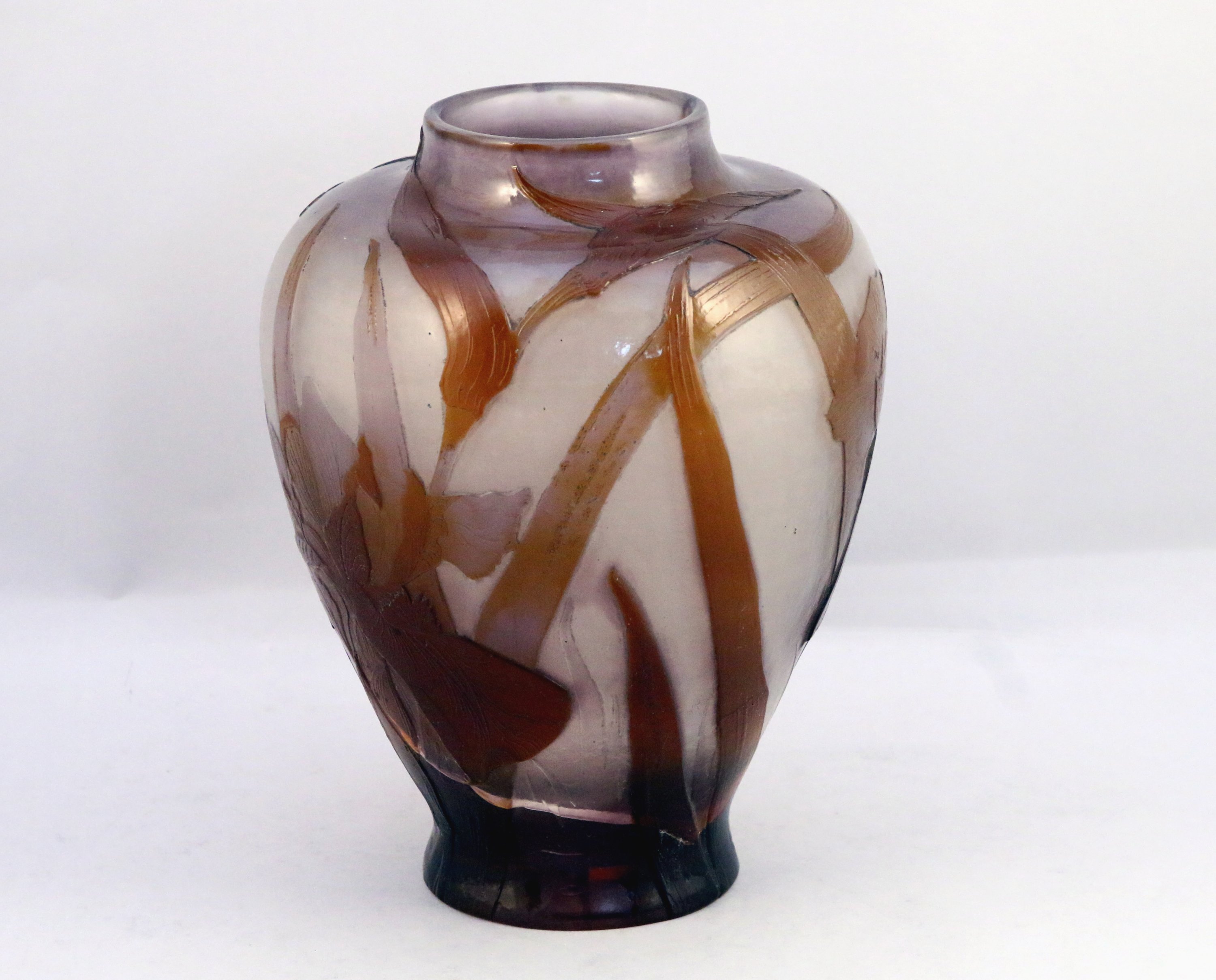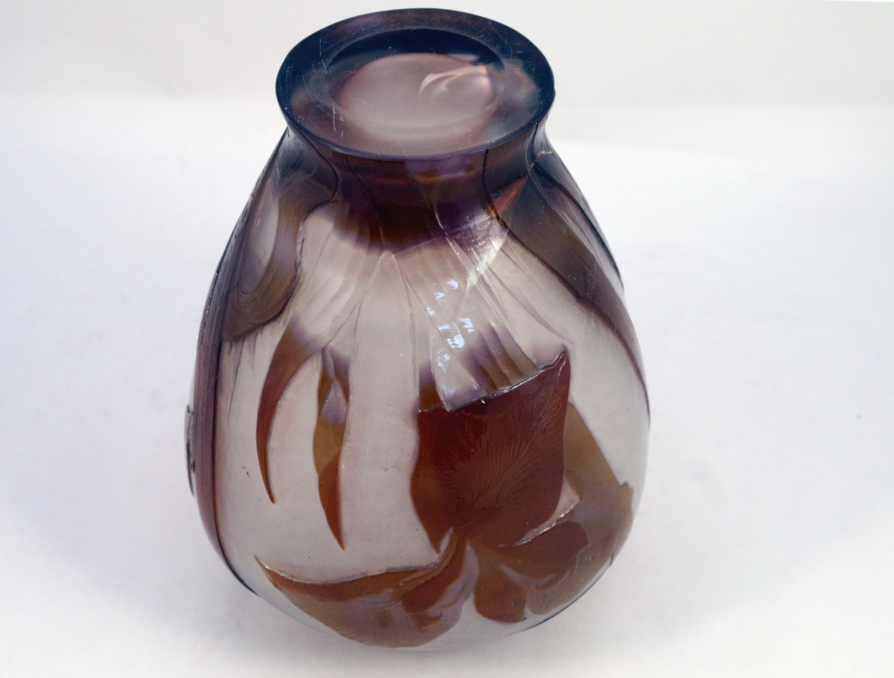 en verre multicouche dégagé à l'acide, la panse renflée.
