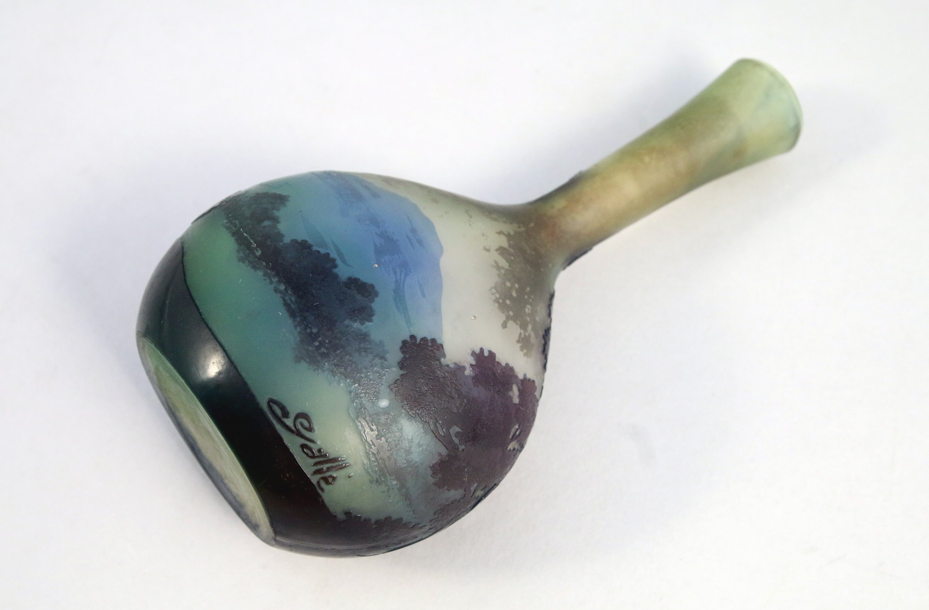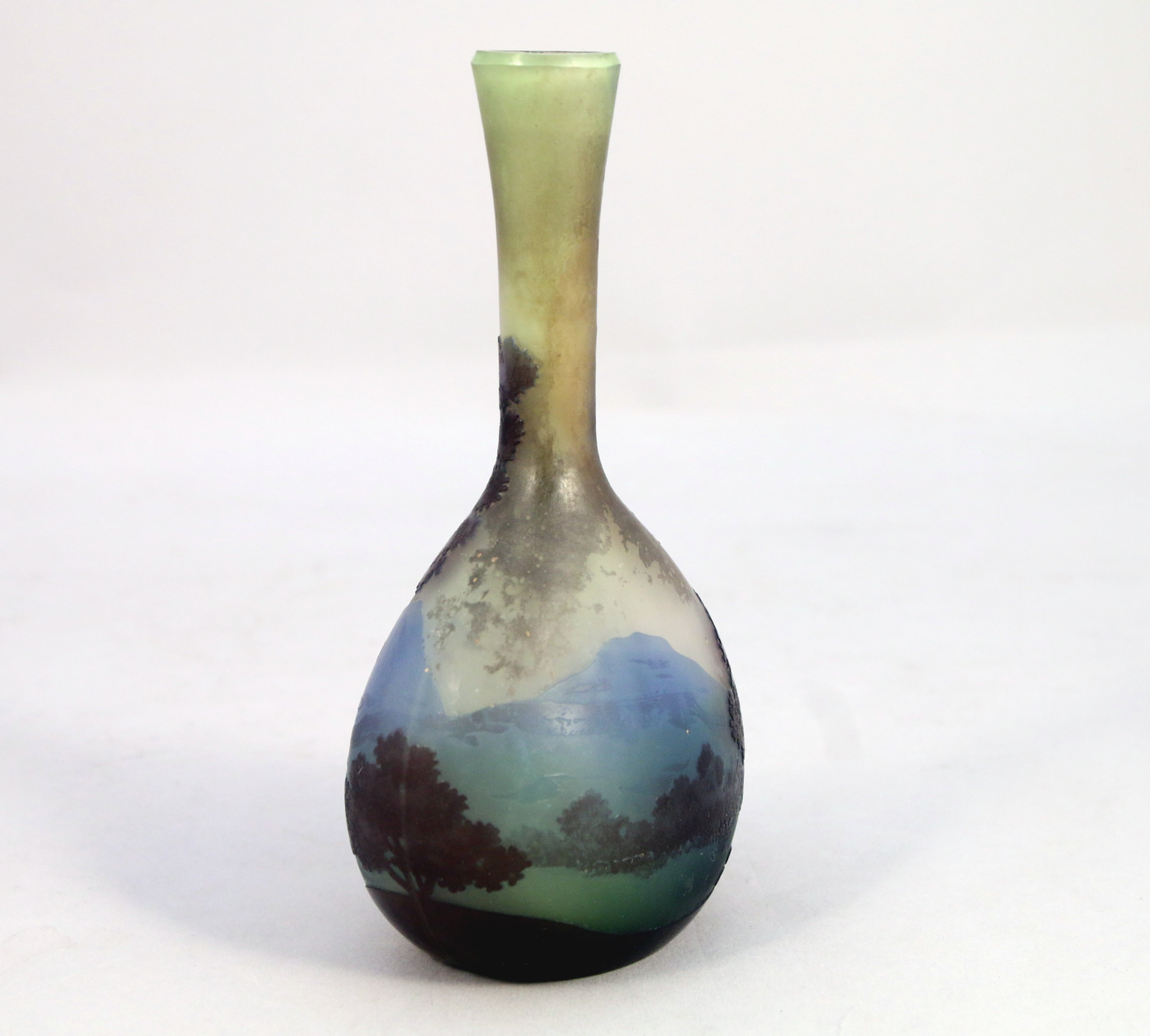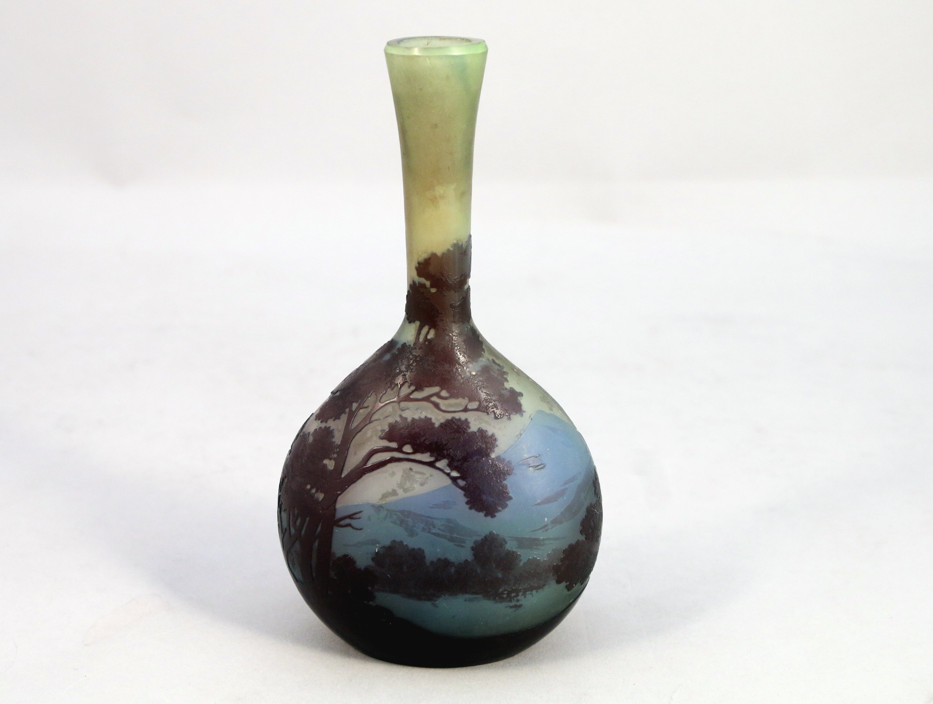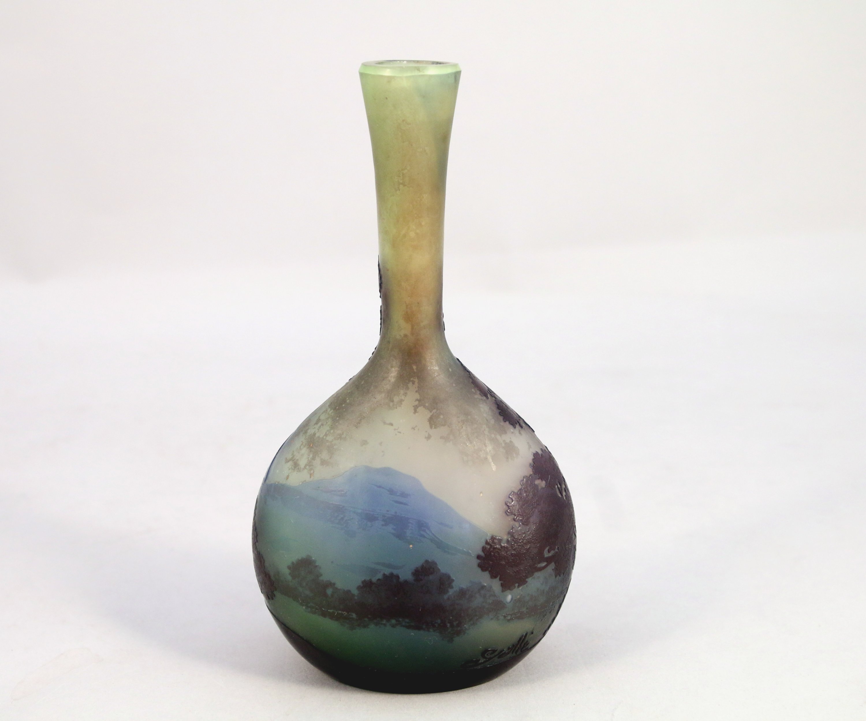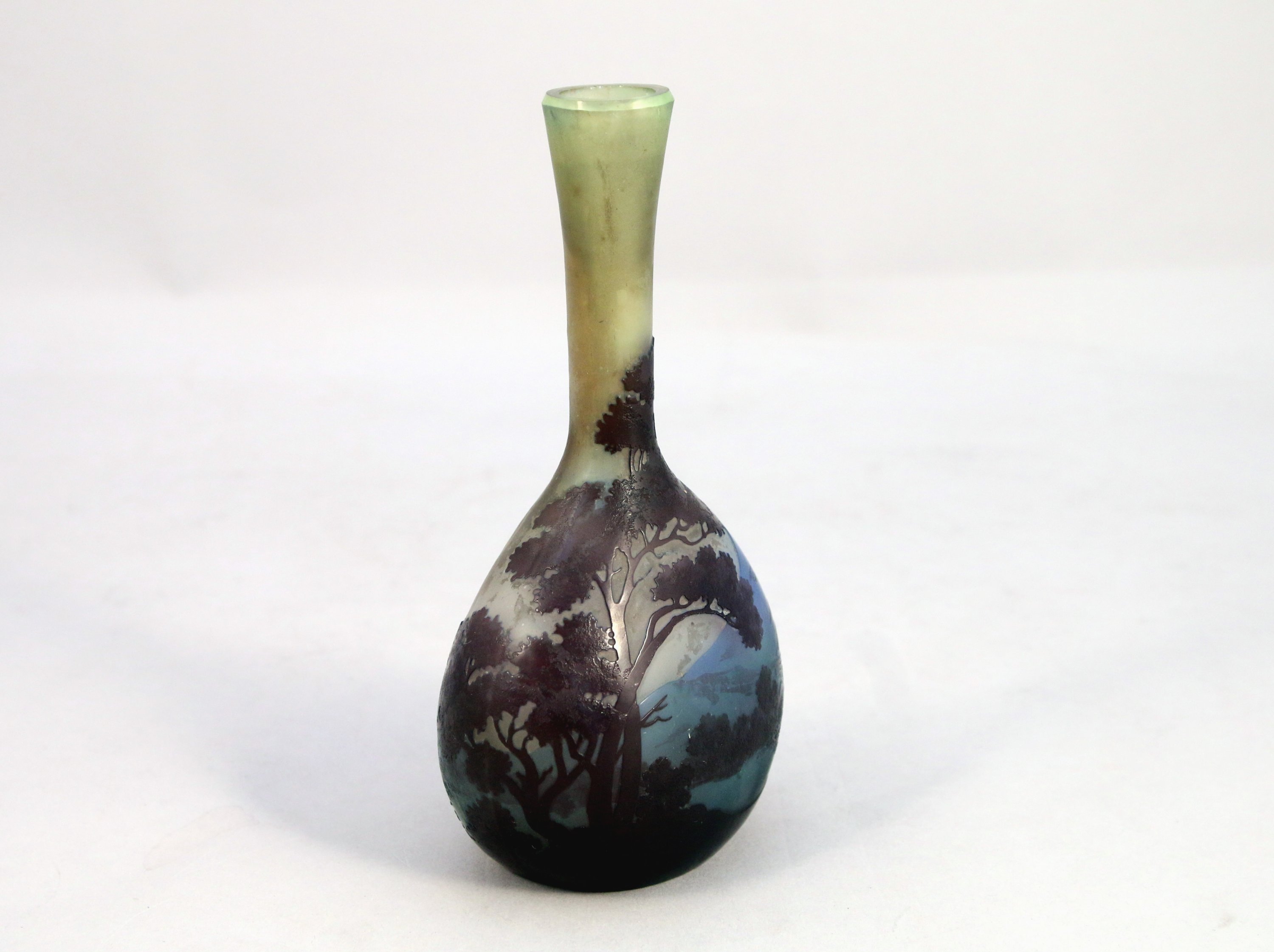 méplat à long col. Verre multicouche à décor paysagé.