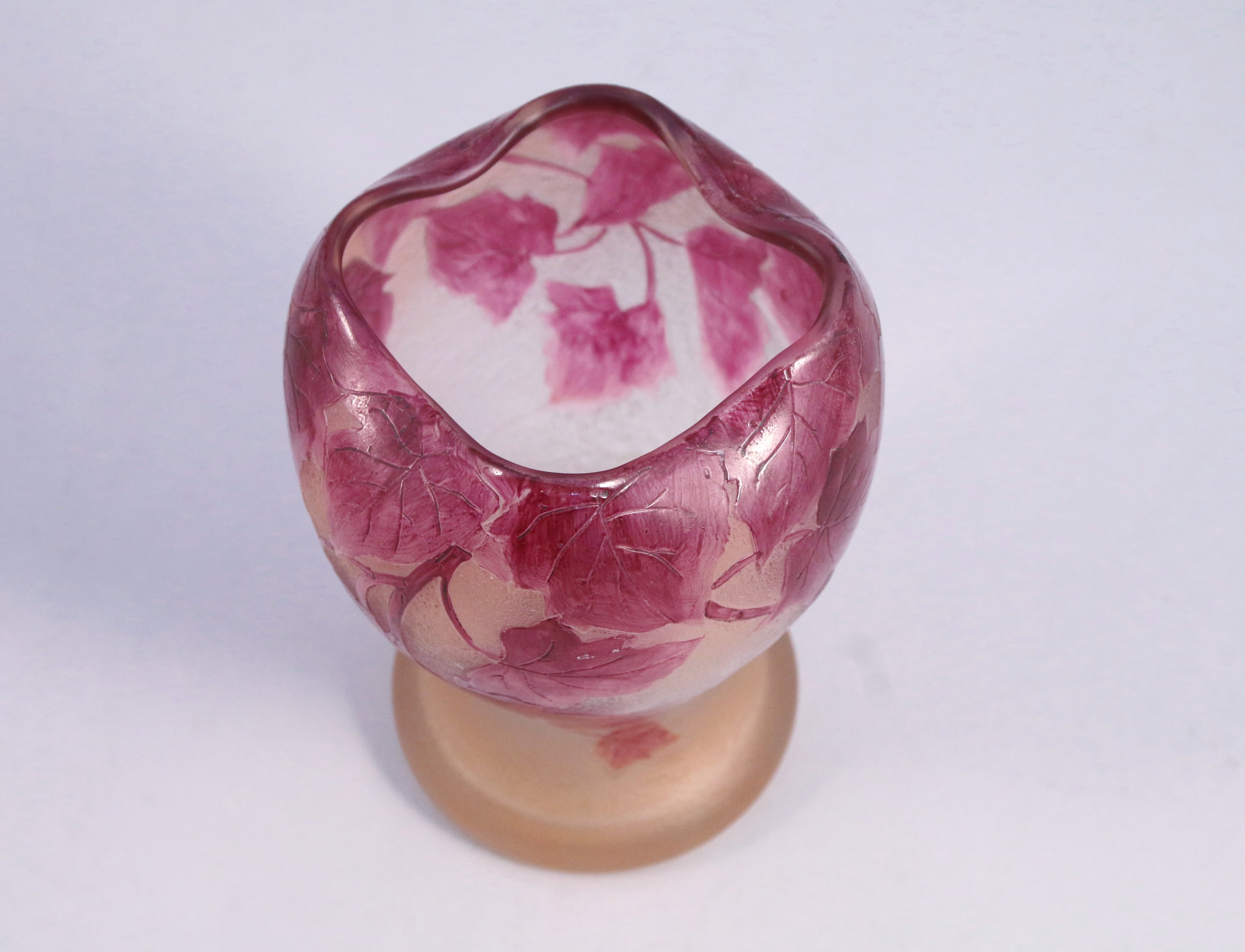JOINT : LEGRAS vase en verre givré. Le col pincé à quatre étirements. Signé. Haut. 14,5 cm.