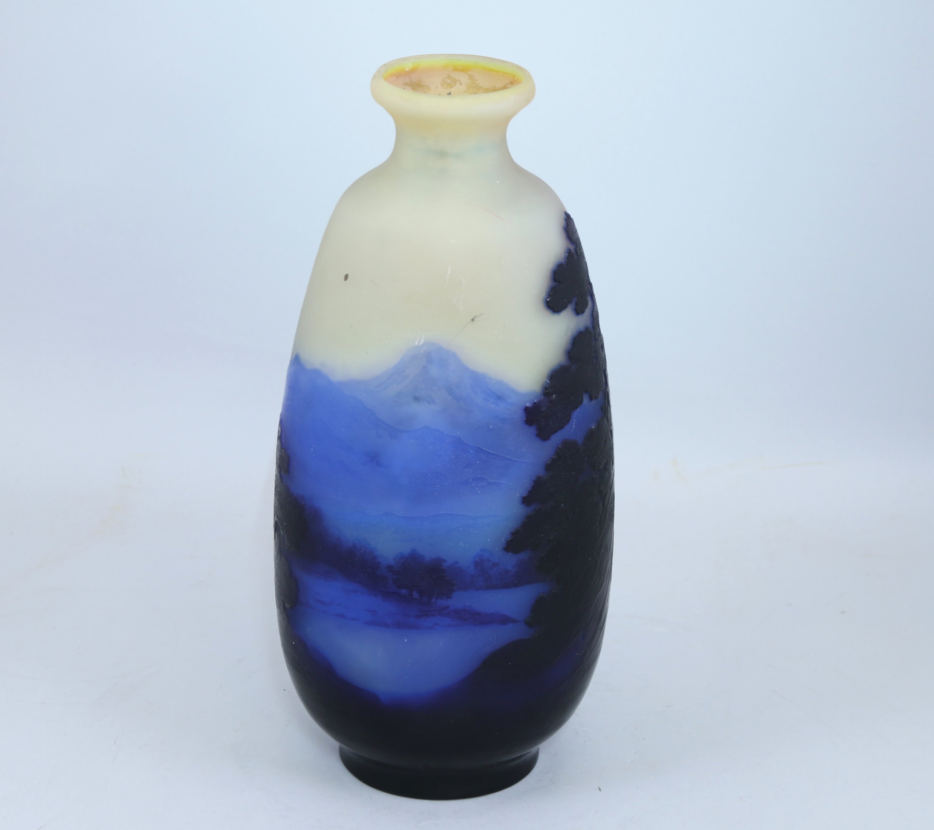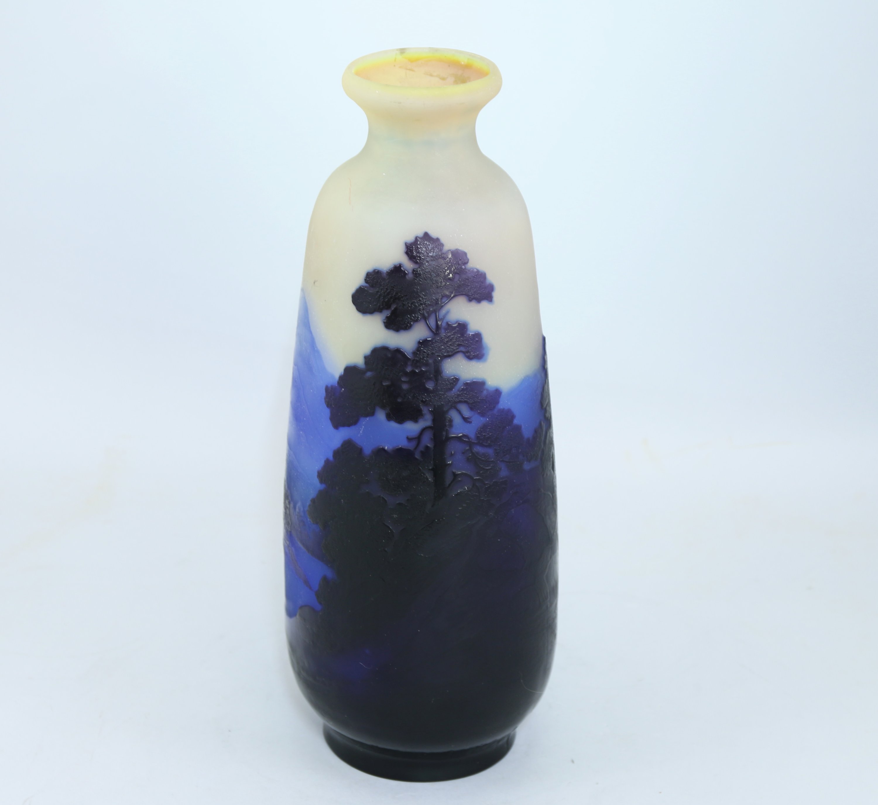 Grand vase à col évasé en verre multicouche dégagé à l'acide. Décor tournant et gravé.