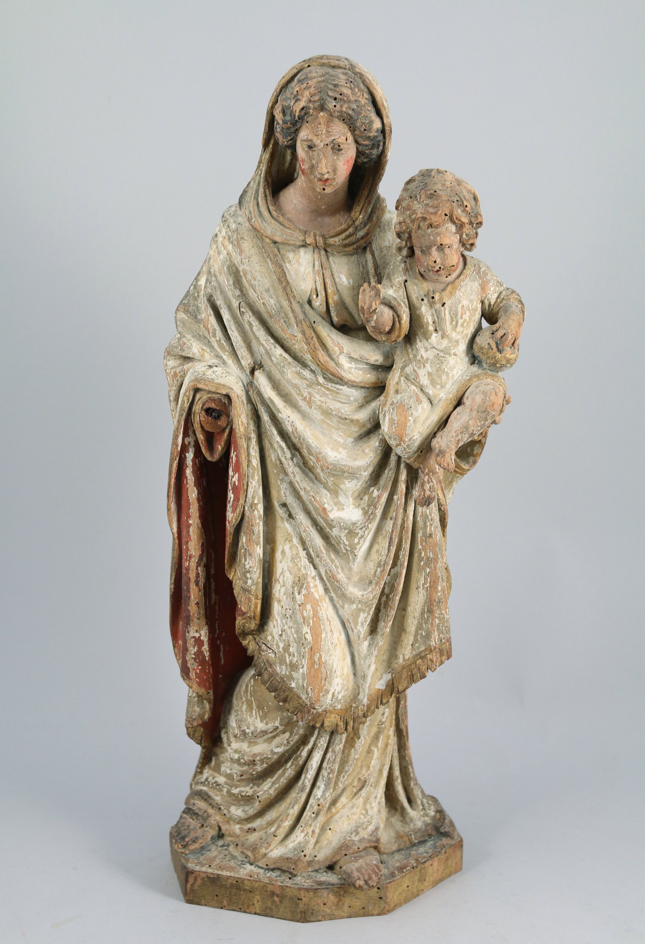 (Manque avant-bras droit de la Vierge, accidents et lacunes à la polychromie).