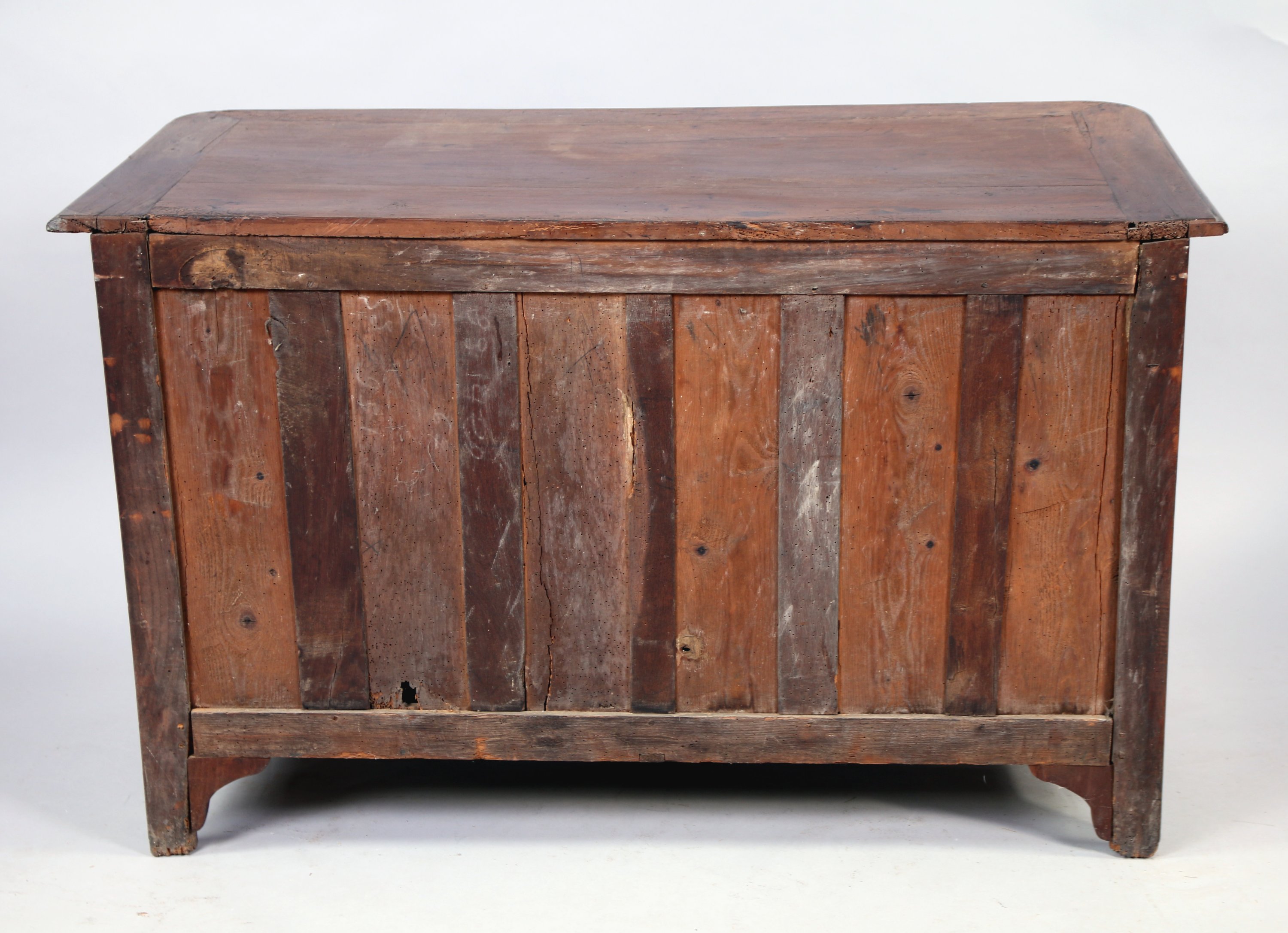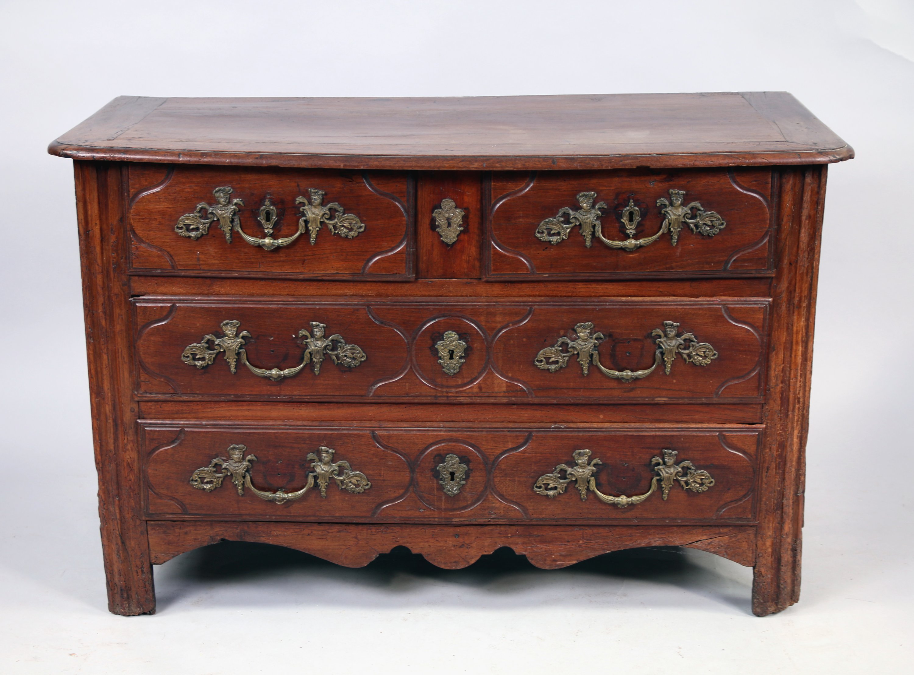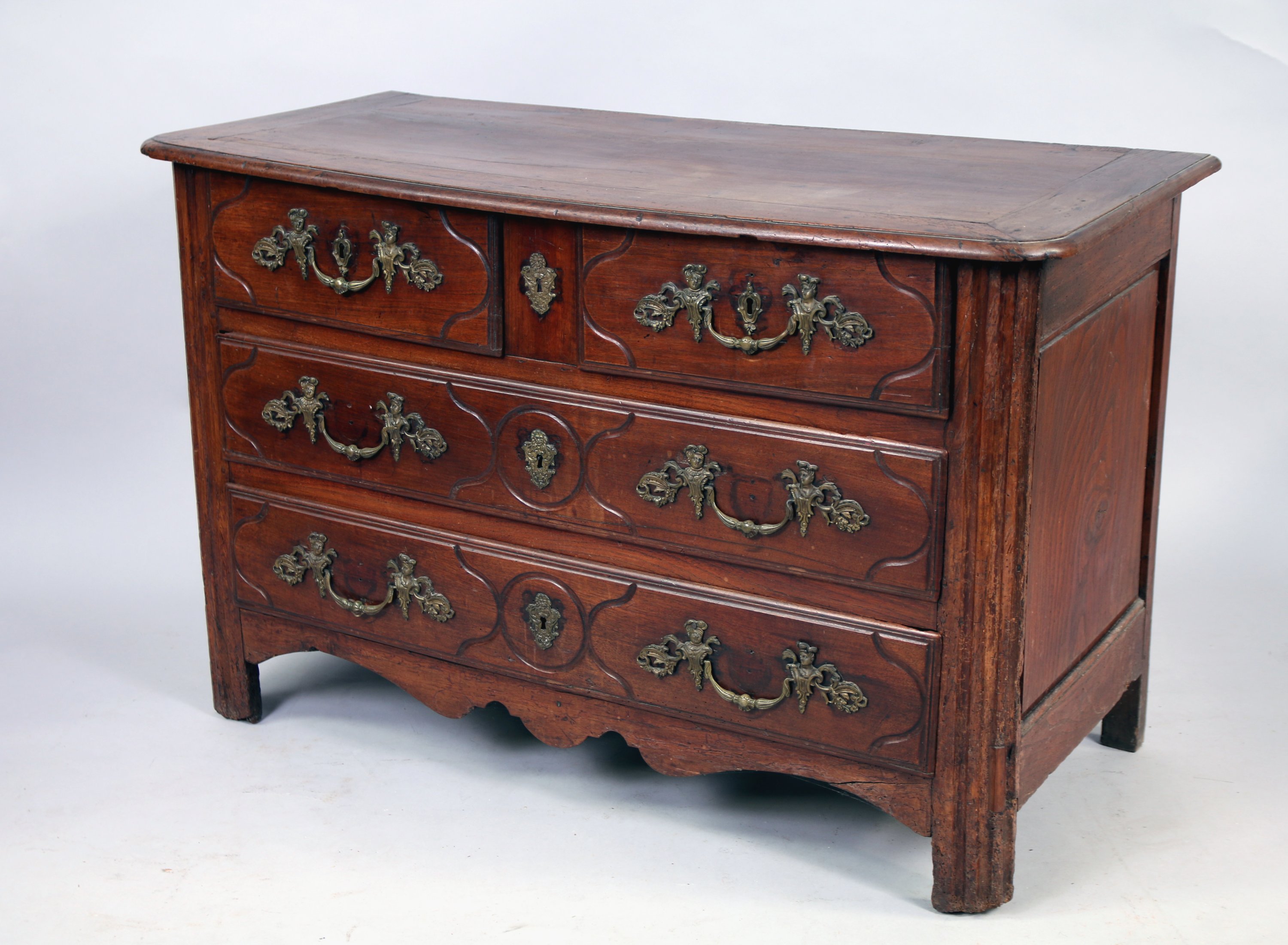 ouvrant par quatre tiroirs sur trois rangs. Ils sont scandés par des polylobes gravés alternant avec des serrures inscrites dans des médaillons.